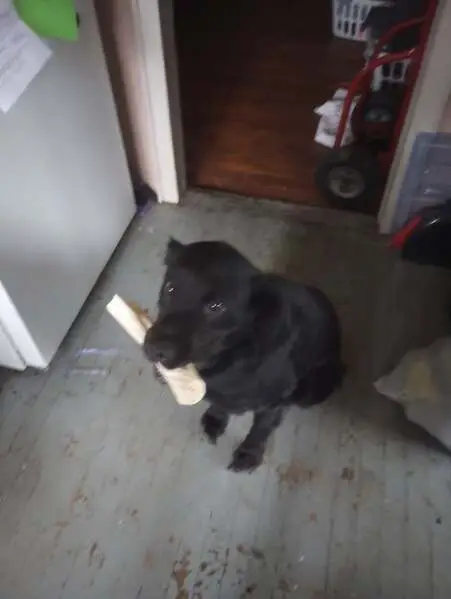 Two puppies, one chocolate color male and a black and white female with matching green and black harnesses. About 12weeks old or so, picked up Sunday night off of Hwy 25 north of Advance, mo.