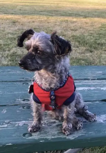 Aged grey female poodle found wandering on a road in Aiken. Poor eyesight due to advanced cataracts and has an arthritic hind end. Very sweet dog.