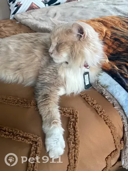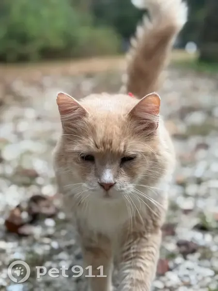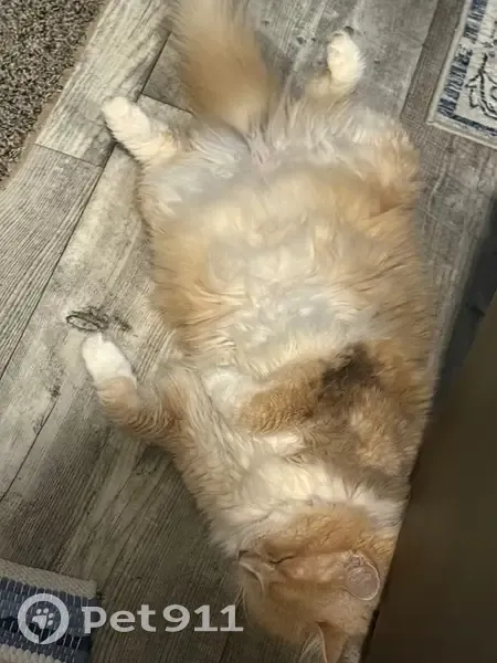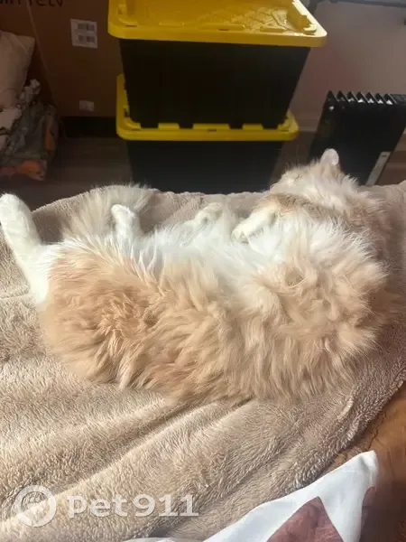 Noel is a very friendly and sweet cat, he’ll even let you pick him up. He sleeps inside during the day and likes to roam outside at night (He likes to be let out at 10pm and comes back by meowing at the door at around 6am). He did not come back this morning, which is not like him. We are new to the area and he is just beginning to adjust. Description wise- He has a distinct patch of black fur running up his right front leg. He also wears two red collars- one with a bow tie and one that is a flea collar. He has a makeshift tag (It’s a suitcase tag we were using until his real tag arrived in the mail), except the blue writing is completely smudged by now (of course it is as soon as he goes missing). Additionally, he is very fluffy, with a white belly and orange and white fur.