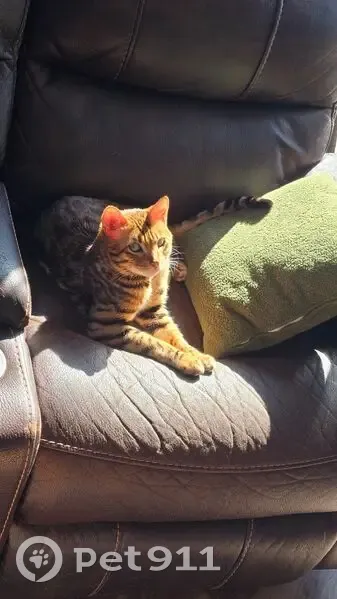 He jumped off our two story back deck and took off. He is adopted from Georgia, where he was partially an outdoor cat, so he may not come in easily. Bribe him inside with food and trap him please!
