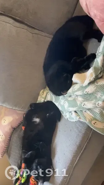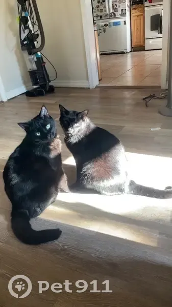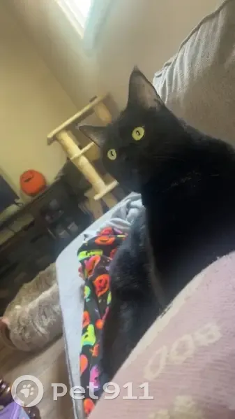 Our cat got out while we were out of town. He is all black with a little white patch on his underside and has yellow/green eyes. He is approximately 4 years old and fixed.