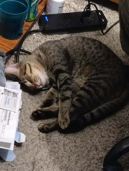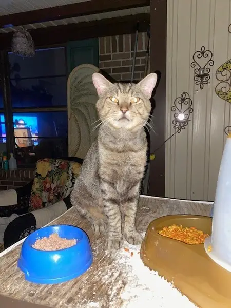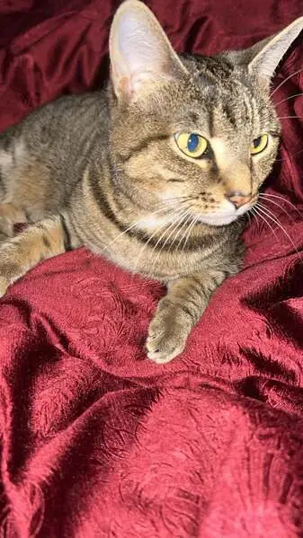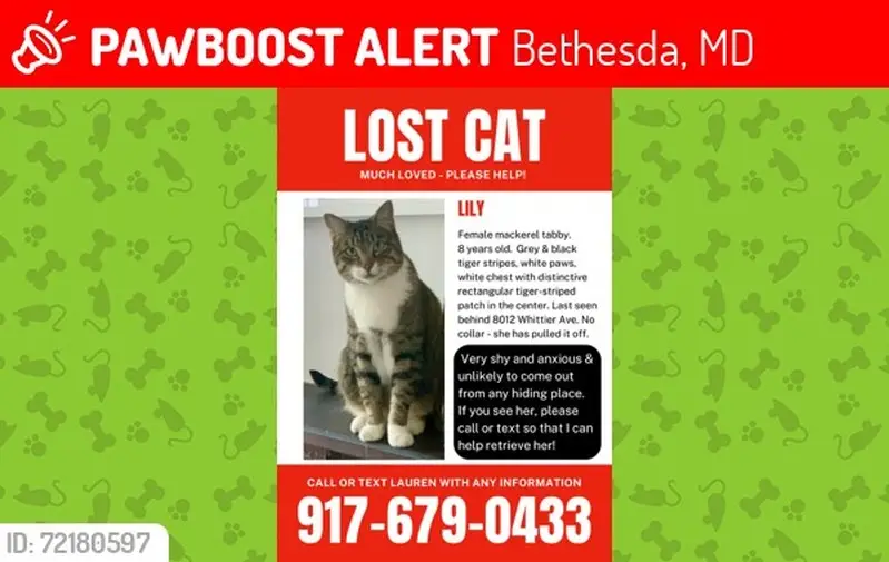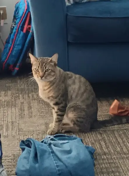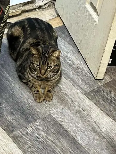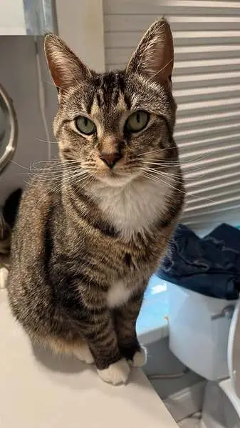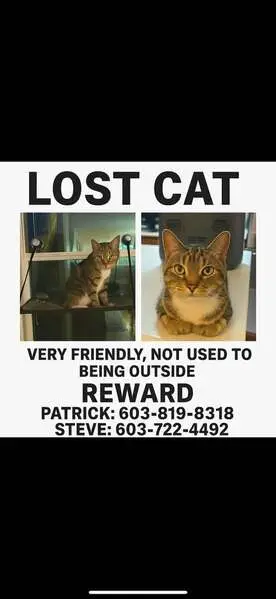 Smallish medium sized male cat, NOT NEUTERED, very sweet and affectionate. Nails are trimmed and has a soft meow. No collar. White paws but back foot has more white than others.