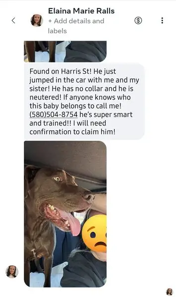 Very timid female, lab/pit bull mix. Non-aggressive. Wearing a blue collar and possibly a pink harness leash is still on her body. Reddish brown color with a white blaze on her chest. Brown eyes. One year old possibly in heat. She was overnighting at a friend's place and escaped in the area of Dalewood Way/Alta Sierra/Kenwood Estates/Evergreen Estates. She is timid so must approach slowly or she might run.