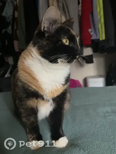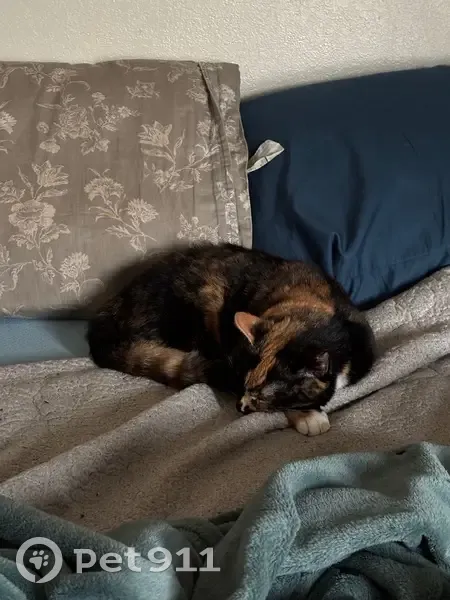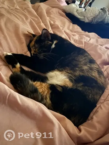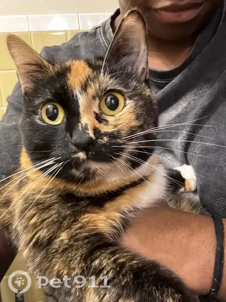 Persephone is a 4-year-old, Donestic shorthair Tortie with an extra finger on each paw. She was already spayed and microchipped when i adopted her in April. While in the parking lot at 8am yesterday, a car engine started and scared her out of my arms. This happened on moving day when we will no longer be living in the area. I am heading back to the area here in a few minutes…. I just want my sweet girl back.