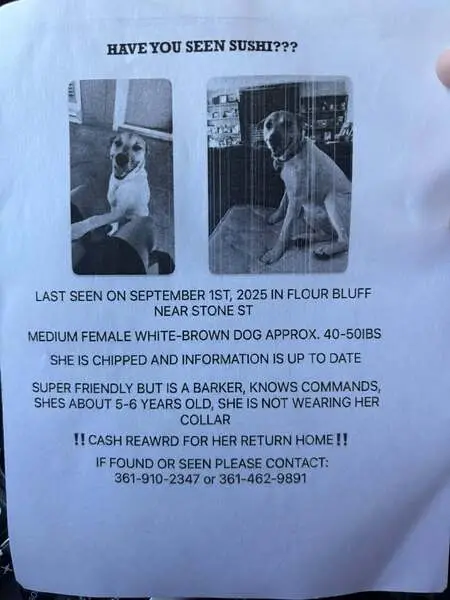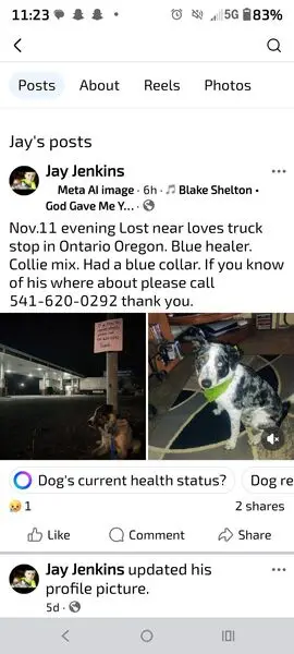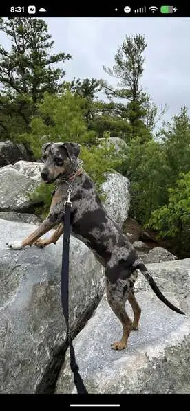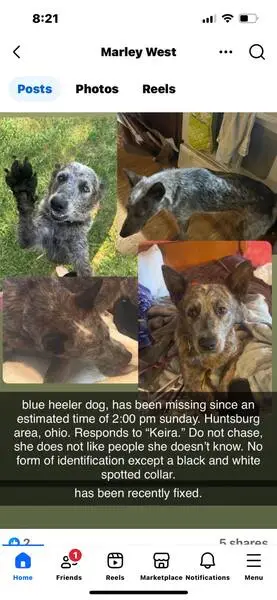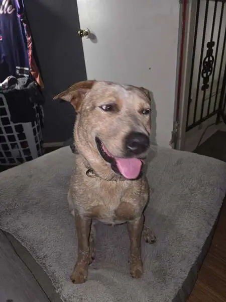 Found this very sweet female healer dog. She is very smart, playful, high energy, loves to play fetch. Appears that her previous owner cared for her and trimmed her nails. Her coat is white and reddish brown with spots and she has a beautiful bushy tail. She has a wide pink collar. I’m sure her owner misses her very much!