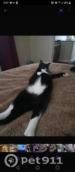 Tuxedo Male Black and white 2 years old indoor cat. Skiddish. Visiting AZ from Colorado so very unfamiliar with area. He accidentally got out from a window through a screen. Not chipped. Miss him so much. Please help.