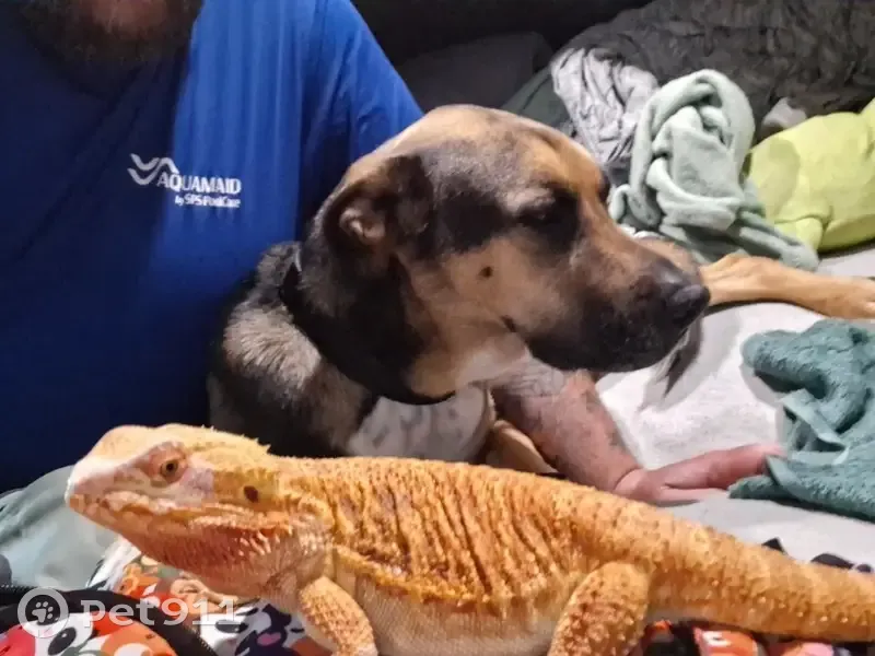 She is a very skittish dog but is also friendly. She pump out of my window when I went into a gas station right around the same area I lost her. Please someone help me reunite with her. She also had or maybe still might have a green KONG harness and a baby blue horse lead leash that was attached when she bolted.