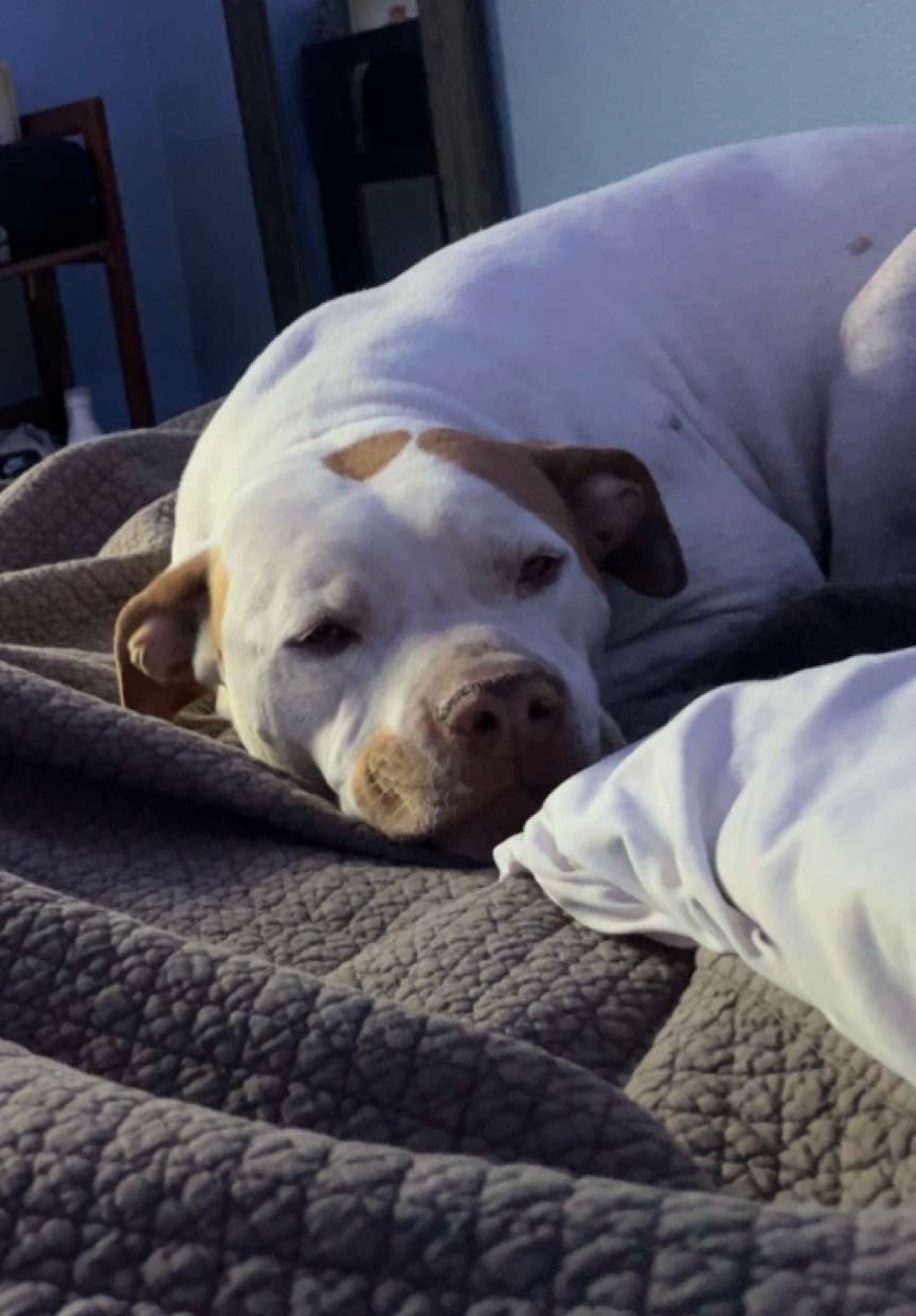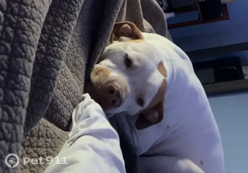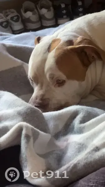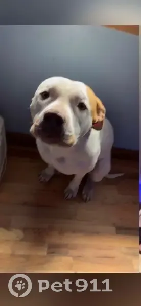 White and tan dotted pit bull, short haired. I either think he has ran away or been stolen!! He just was not in my yard when i can back home which he typically has free range too