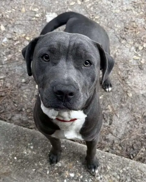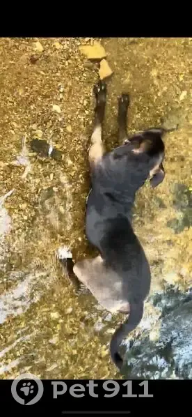 He is the sweetest boy. His name is Dog and he will answer to the spelling of the word. I love him so very much. He is skiddish ,timid and probably scared to death he has a very mean bark,its a front he will lick you to death. He s a very loving dog he s black and brown he shimmers certain timesof day.