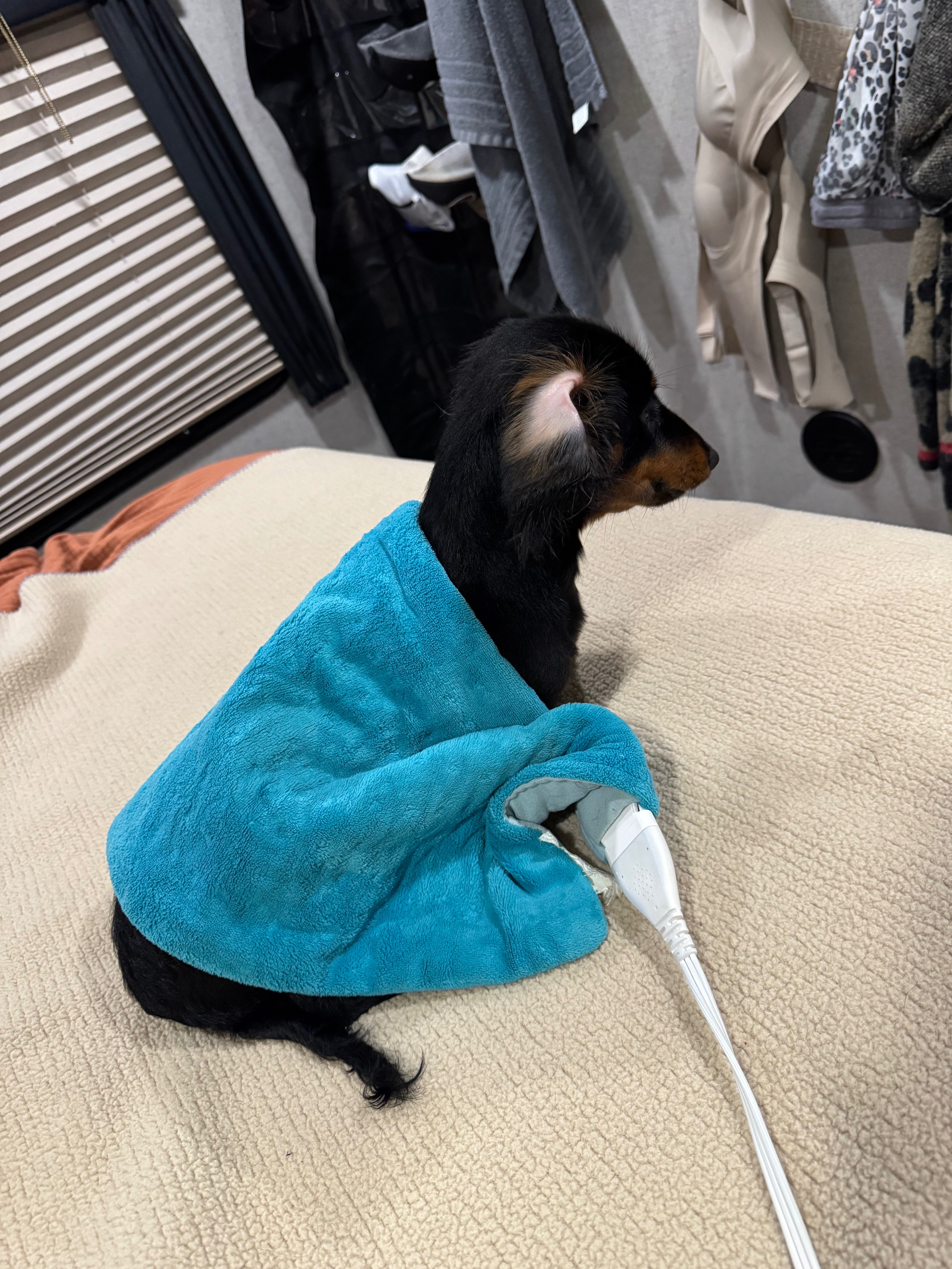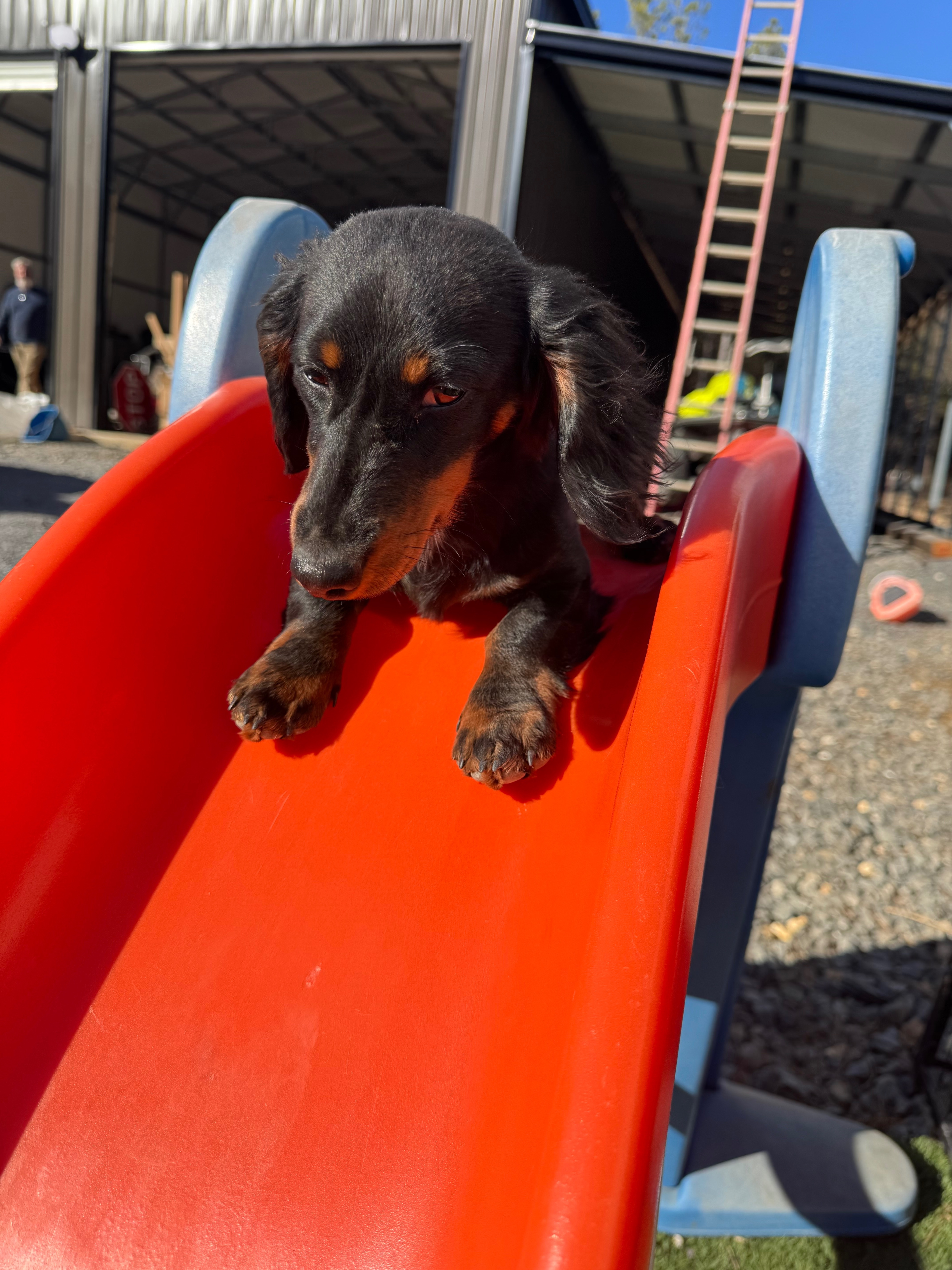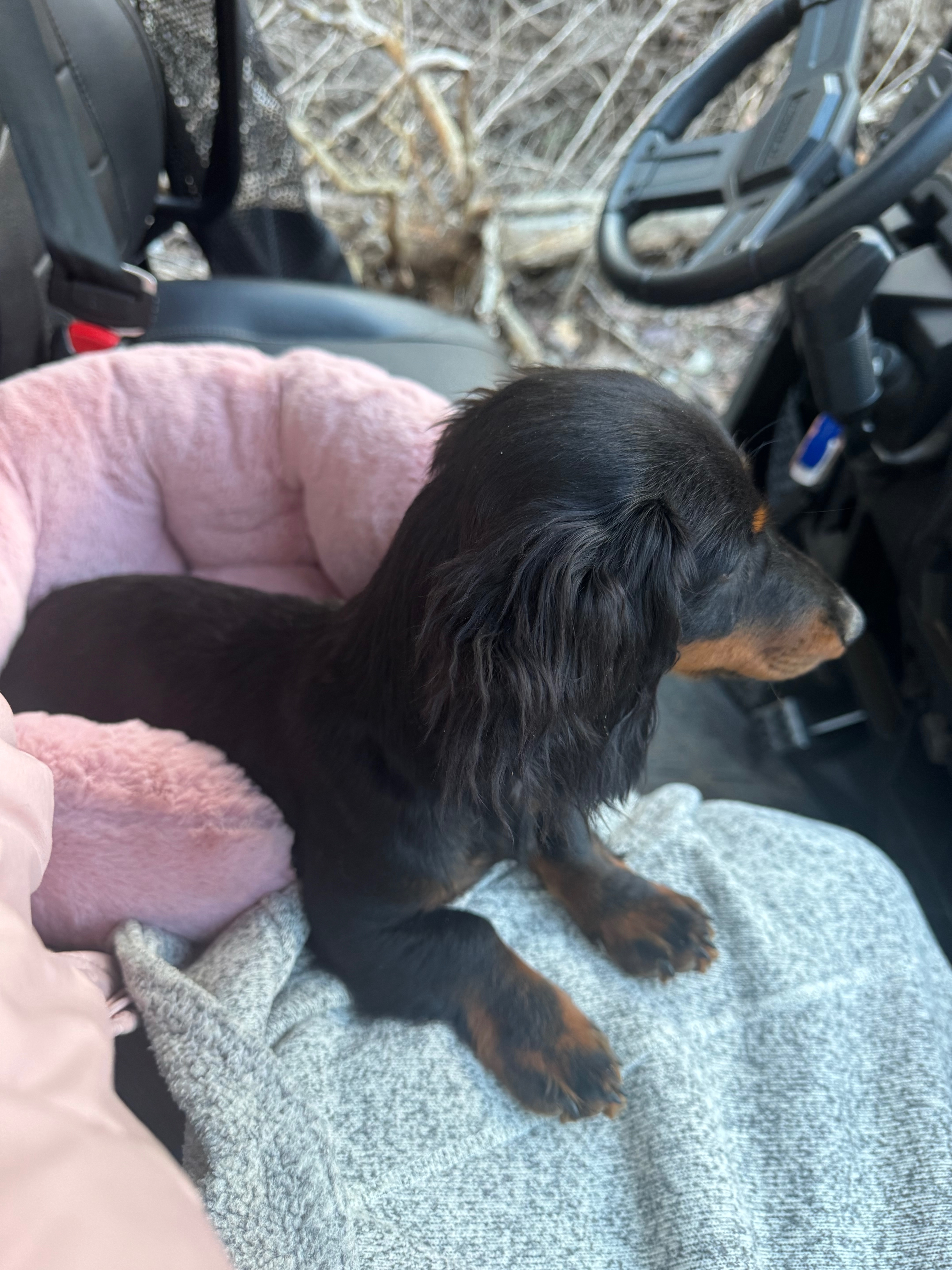 Harley is a medium hair miniature dachshund she is 7 months old. Black with some tan/brown spots on her. She ran off with my in-laws 2 dogs. One blood hound and one German shepherd. They must have gotten split up because they were found and she has not been.