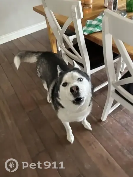 I need some help finding Maverick please! He has been missing 2 April at 818pm, last seen with sitter leaving in my car. Sitter is a missing and wanted person, and I reported Maverick and Subaru as stolen. Maverick is microchipped and on HomeAgain, 24petconnect, and pawboost as lost. 11 years old. Left eye is blue, right eye is brown. Missing toe front left paw. Mild arthritis. About 60lbs. Siberian Husky. Classic husky colorings, black and white, with a black spot on belly in the white fur. His collar is gray with black geometric patterns. His tag is silver with white faded/worn mountains and has his name on the front, on the back is all my info (address and phone).