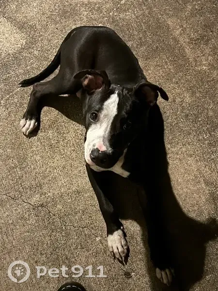 Black and white coat. No collar. Intact. He was standing in the middle of the highway, I pulled over and called him to me and he came right over. Very friendly.