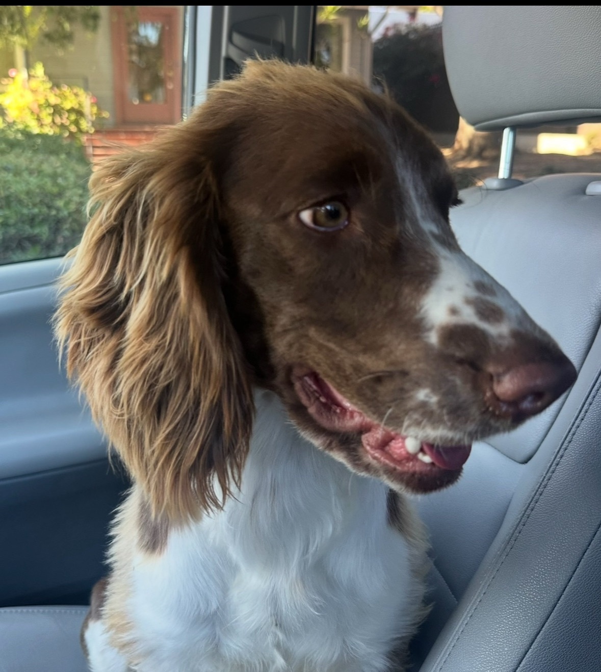 Scotch is Brown and White with a short brown tail. He is gentle and shy. He ran away because of fire works and he is sensitive to loud noises. He is NOT a hunting dog. He hates gun noises.