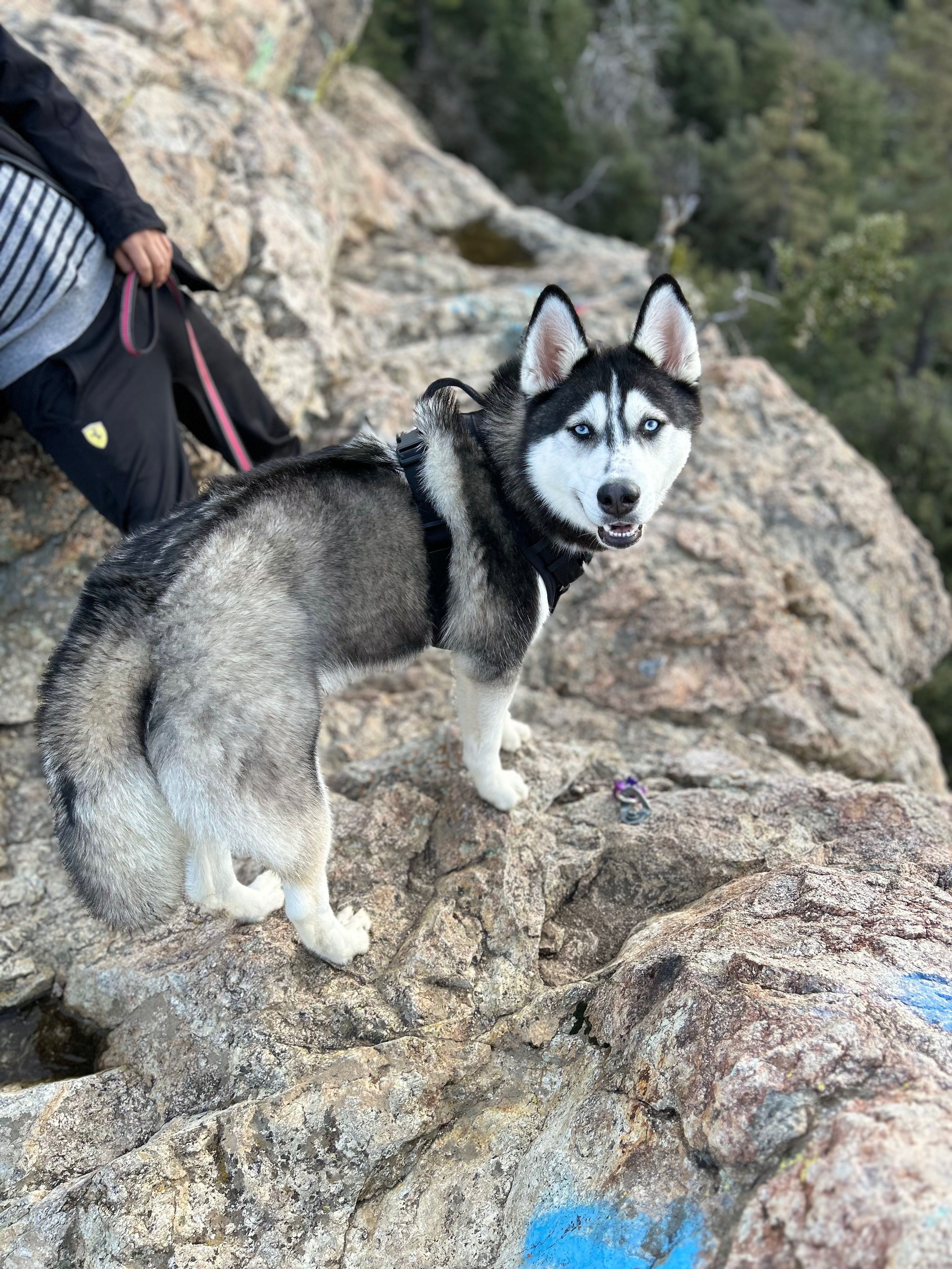He was scared by the fireworks, he doesn't have a collar, he has a mole on his right eye, his tail is stained reddish-brown, and he sometimes limps on his left hind leg. He is harmless.