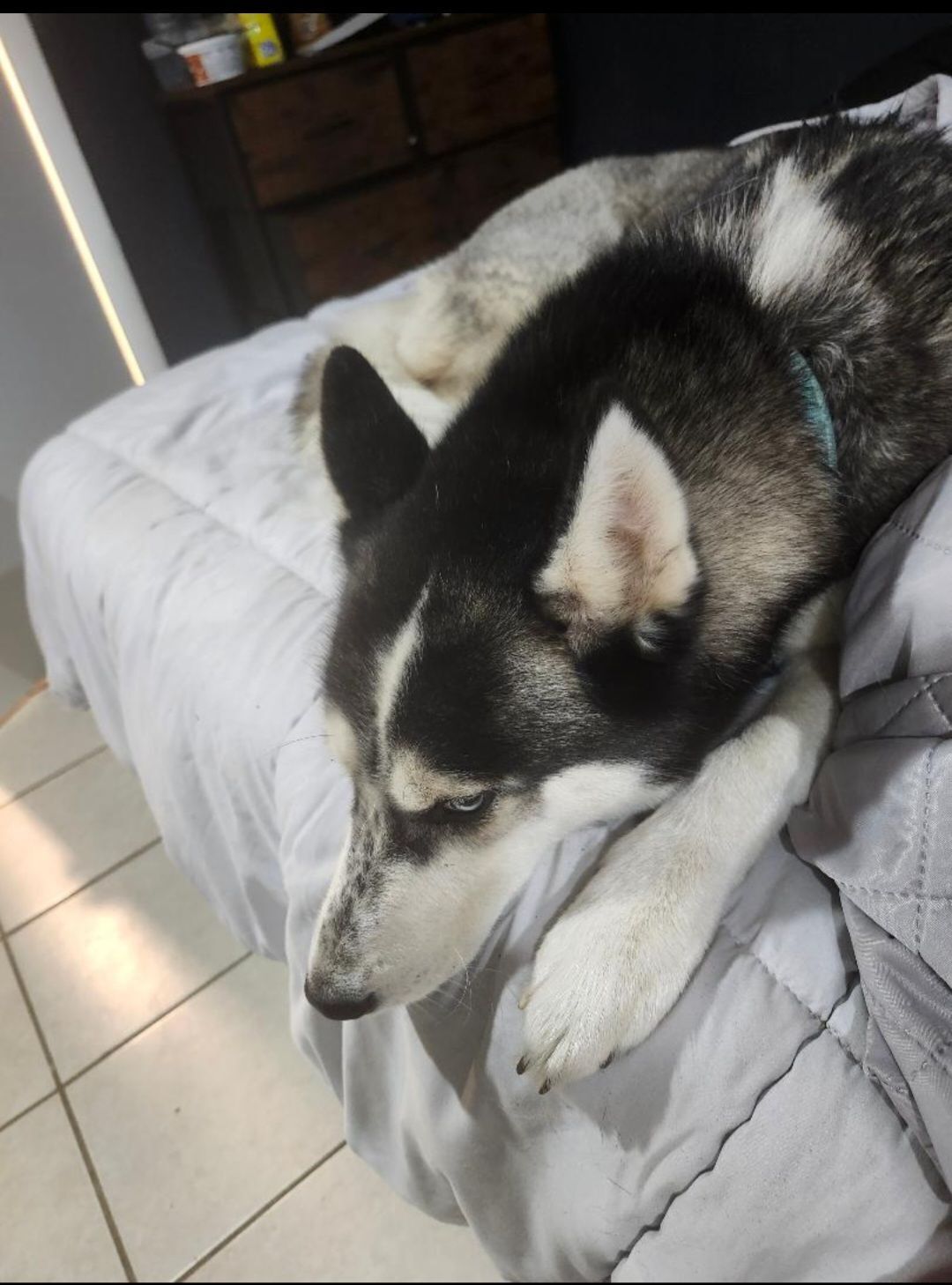 My girl got out of the back yard at 13 n Wickham rd baltimore md 21229 she is my emotional support animal she has a lot of energy she is a sweet girl very friendly loves snacks def she loves going on long walks with my son ive had her since she was 10 weeks old she is 3 soon to be four she is chipped and she is fixed she isn't just my dog she is my family my furry baby. I do not drive im 57 she is my whole world I need help finding my baby i call her loony luna have since she was small my phone number is 304 216 4810 my name is lisa. She had freckles on her snout she has a Grey fle collar she has a blue collar her rabies tag is on her collar as well as her license for baltimore please help