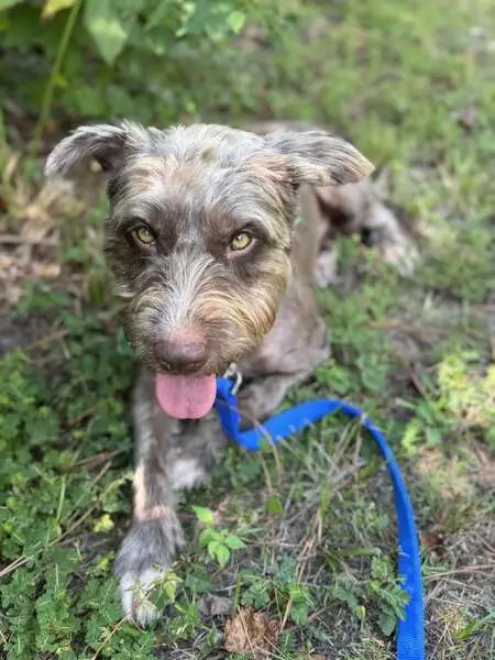 Male dog, gray some black color, not neutered or microchipped. One ear stands up and the other lays down. Sweet dog-found running down Venson in Bartlett, TN