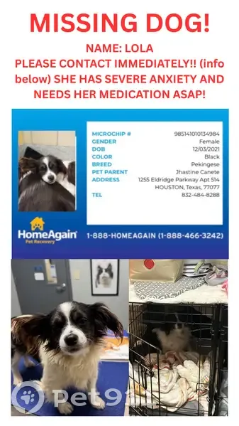 Missing dog Houston, photo: Lost female dog, Parkway Plaza Drive, Houston - small black and white Pekingese