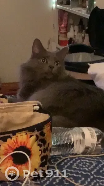 Grey is a big cat he is about 20 lbs he has a white patch on his belly and is long furred he’s a shy cat and very skiddish especially around vehicles he got out in the garage and i’m guessing he went under the house through the vent and got out somehow he is not under the house i’ve left wet and hard food and shook it around and nothing he loves belly rubs and he doesn’t like to bite or scratch people (on purpose lol) he has a very loud purr and he is fixed