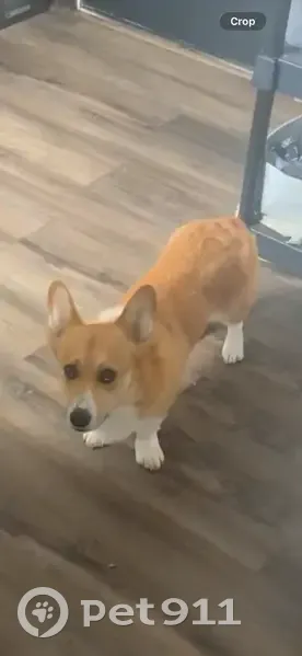 2 year old neutered male Pembroke corgi . White and tan/orange. 25 to 30 lbs brown eyes. Name is Kodak will respond. Sweet sweet boy but may be scared without his human parents