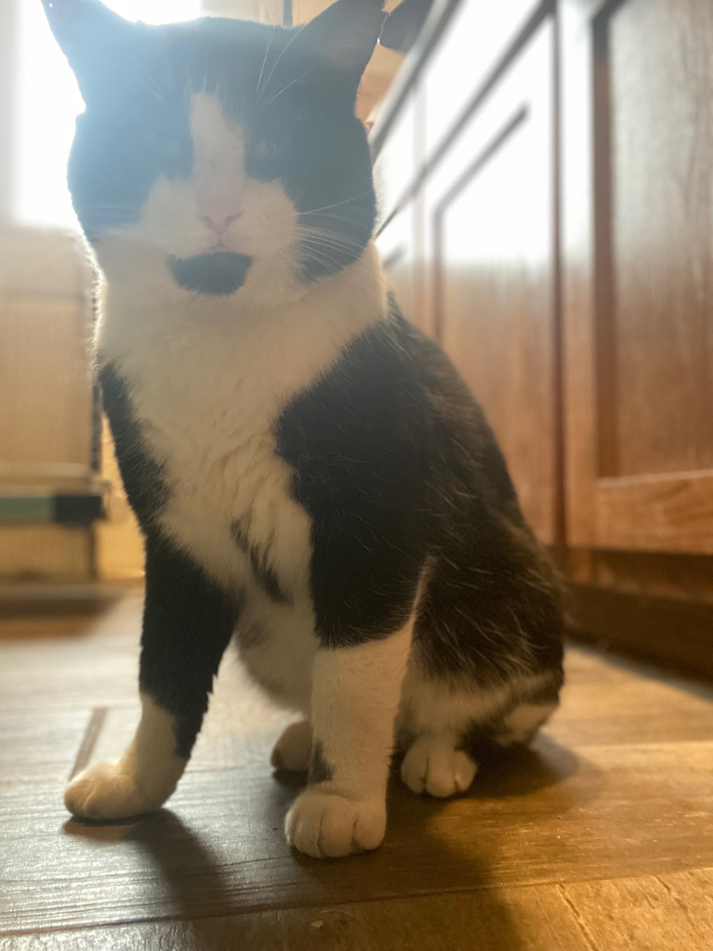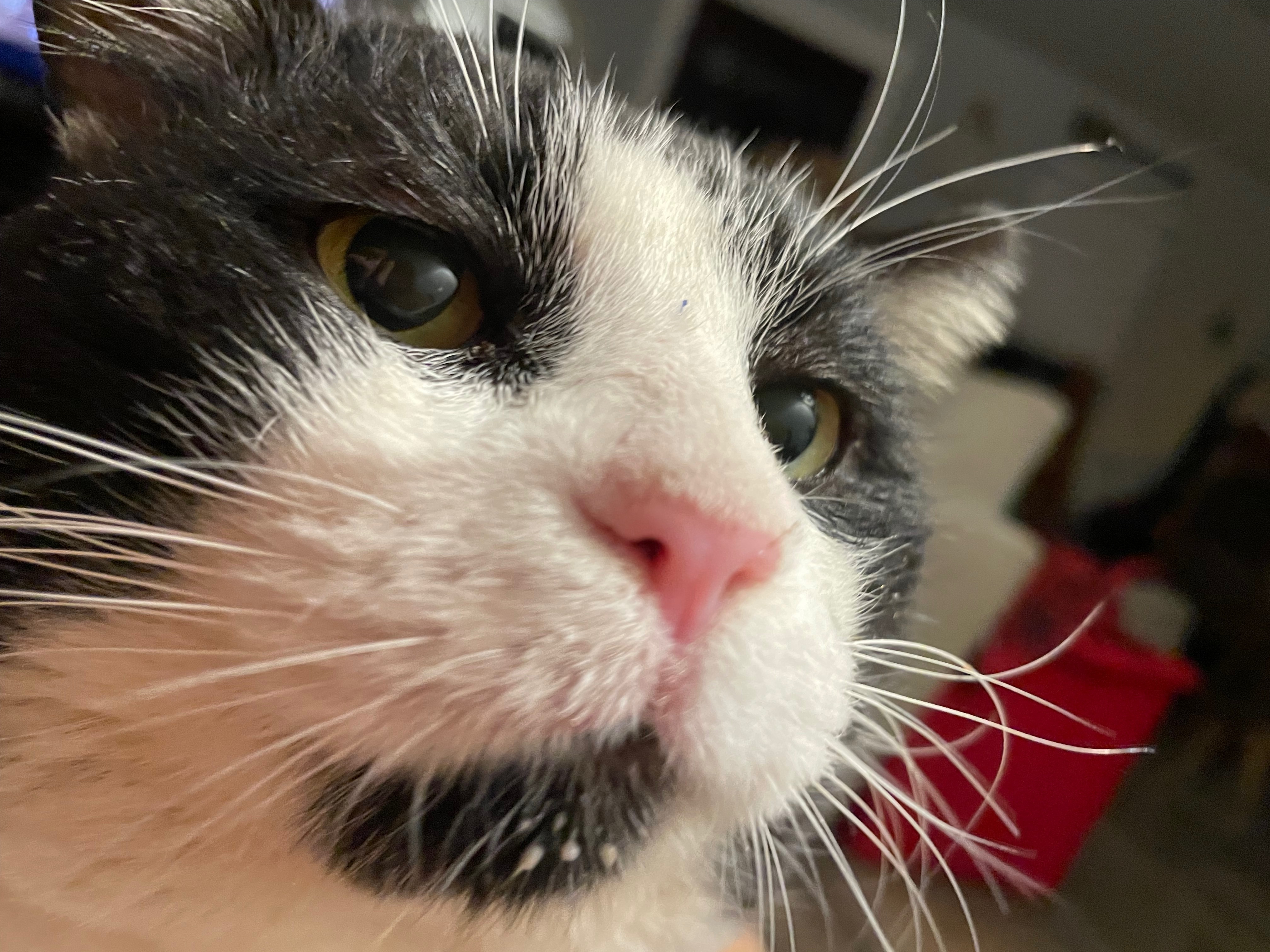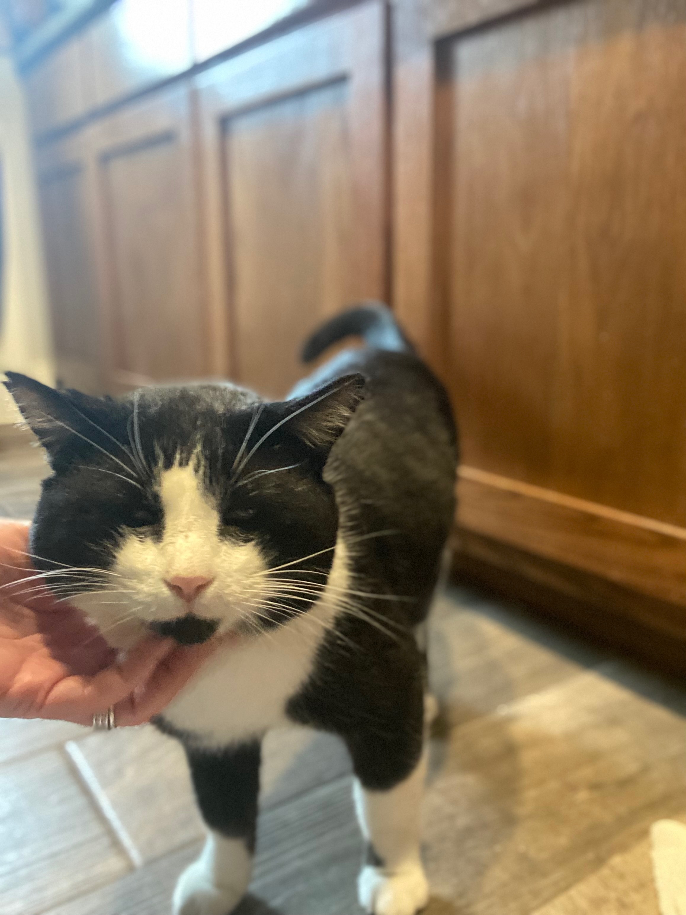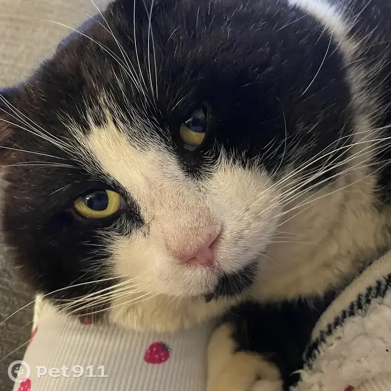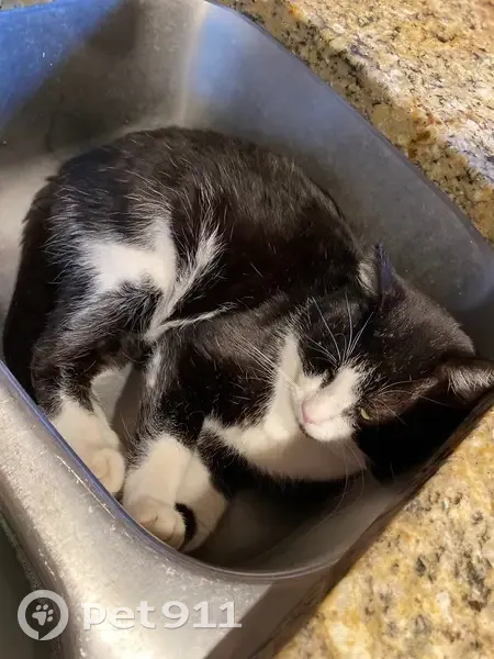 Handsome is our black & white tuxedo cat. He is a male tom cat, so he has big jowls (cheeks). Being a Tom makes him a natural roamer. He has white paws, black back, white belly. He has a black head with a triangle of white like he’s wearing a small white mask over his nose and mouth with the exception of a tiny black goatee. He has tiny chips out of the tops of his ears from fighting (toms are territorial so they fight to defend and protect the areas the roam). I last saw him on Valentines Day February 14th, 2025. I am still hopeful. We miss him so much. He is not neutered or chipped. I was working on saving the money for those things. He missed his yearly check up at the clinic since he has been missing. He probably was without a collar as he comes home without one each time I get him one. He is a wanderer inside/outside cat. That Valentine’s Day was the last day and night I spent with him and I haven’t seen him since. Please if you have our handsome boy allow him to come home where he is dearly loved and missed. My daughter has had him since he was a small kitten. We still drive the neighborhood hoping to see him. It’s almost been a year and we’re still quite heartbroken.