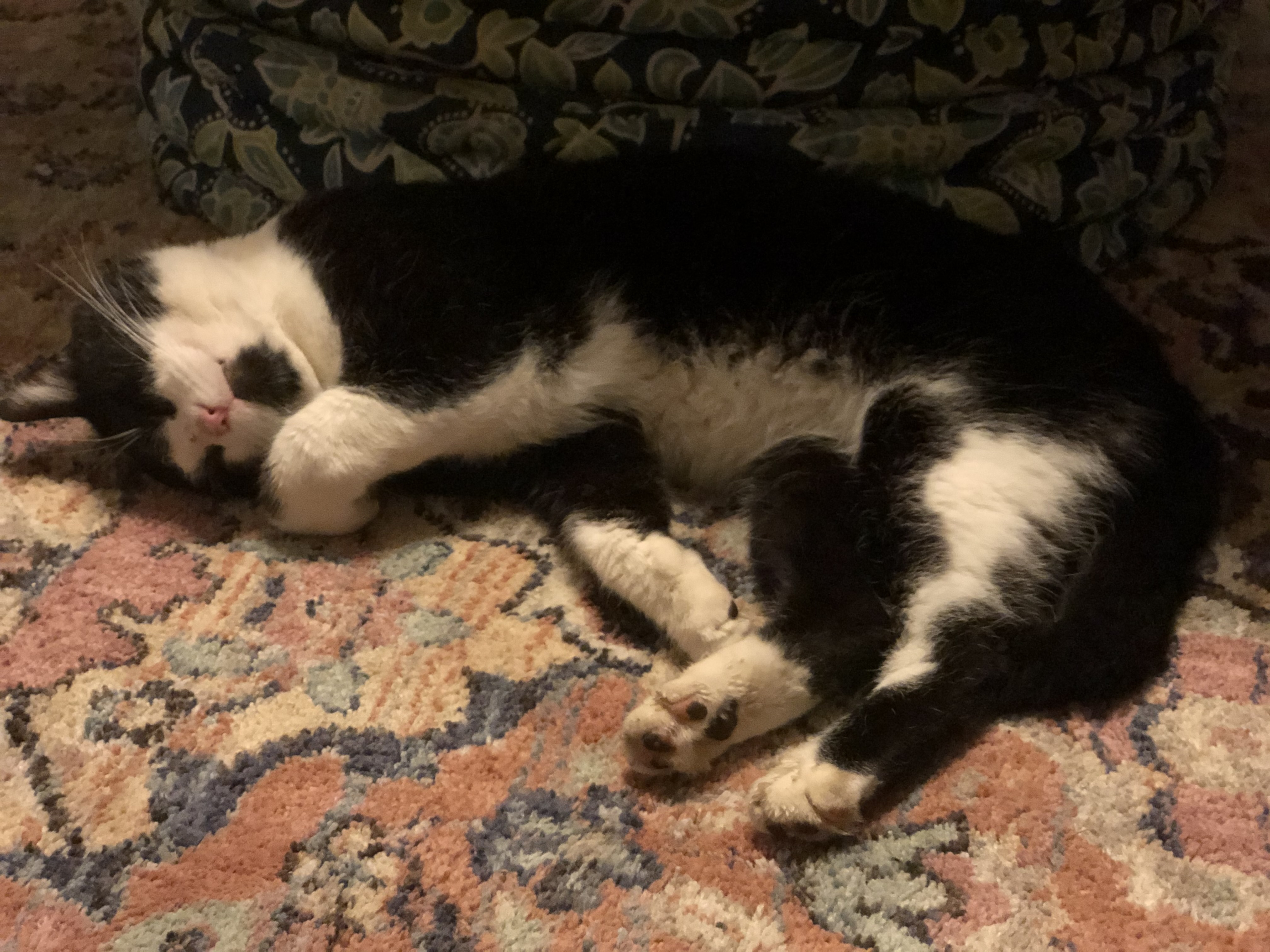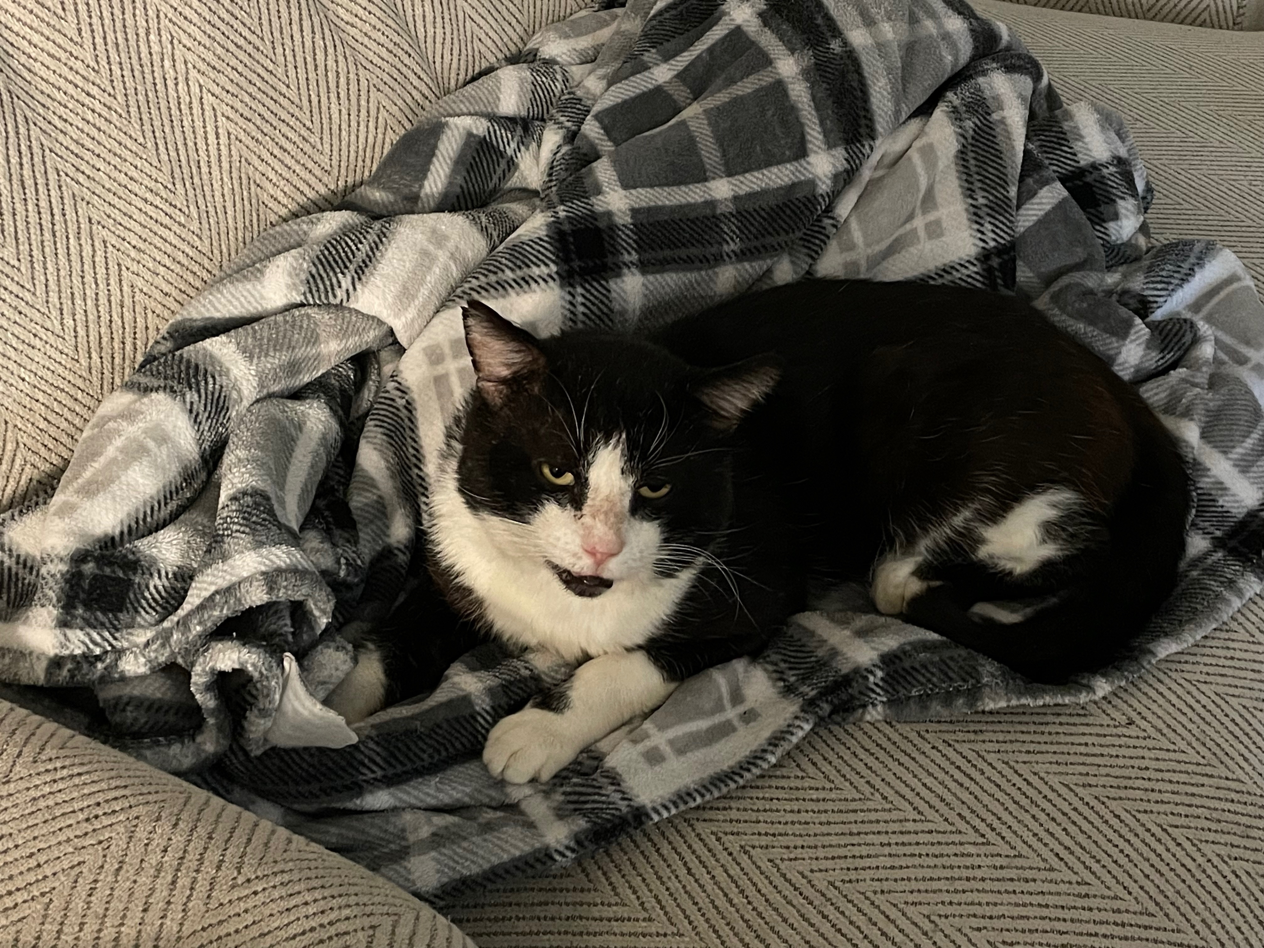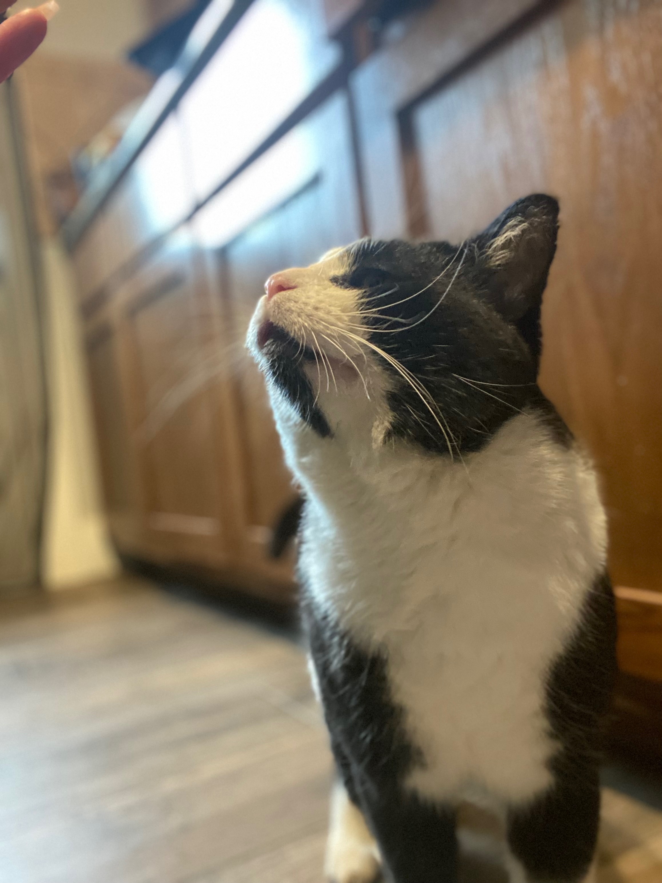 Handsome is our black & white tuxedo cat. He is a male tom cat, so he has big jowls (cheeks). Being a Tom makes him a natural roamer. He has white paws, black back, white belly. He has a black head with a triangle of white like he’s wearing a small white mask over his nose and mouth with the exception of a tiny black goatee. He has tiny chips out of the tops of his ears from fighting (toms are territorial so they fight to defend and protect the areas the roam). I last saw him on Valentines Day February 14th, 2025. I am still hopeful. We miss him so much. He is not neutered or chipped. I was working on saving the money for those things. He missed his yearly check up at the clinic since he has been missing. He probably was without a collar as he comes home without one each time I get him one. He is a wanderer inside/outside cat. That Valentine’s Day was the last day and night I spent with him and I haven’t seen him since. Please if you have our handsome boy allow him to come home where he is dearly loved and missed. My daughter has had him since he was a small kitten. We still drive the neighborhood hoping to see him. It’s almost been a year and we’re still quite heartbroken.