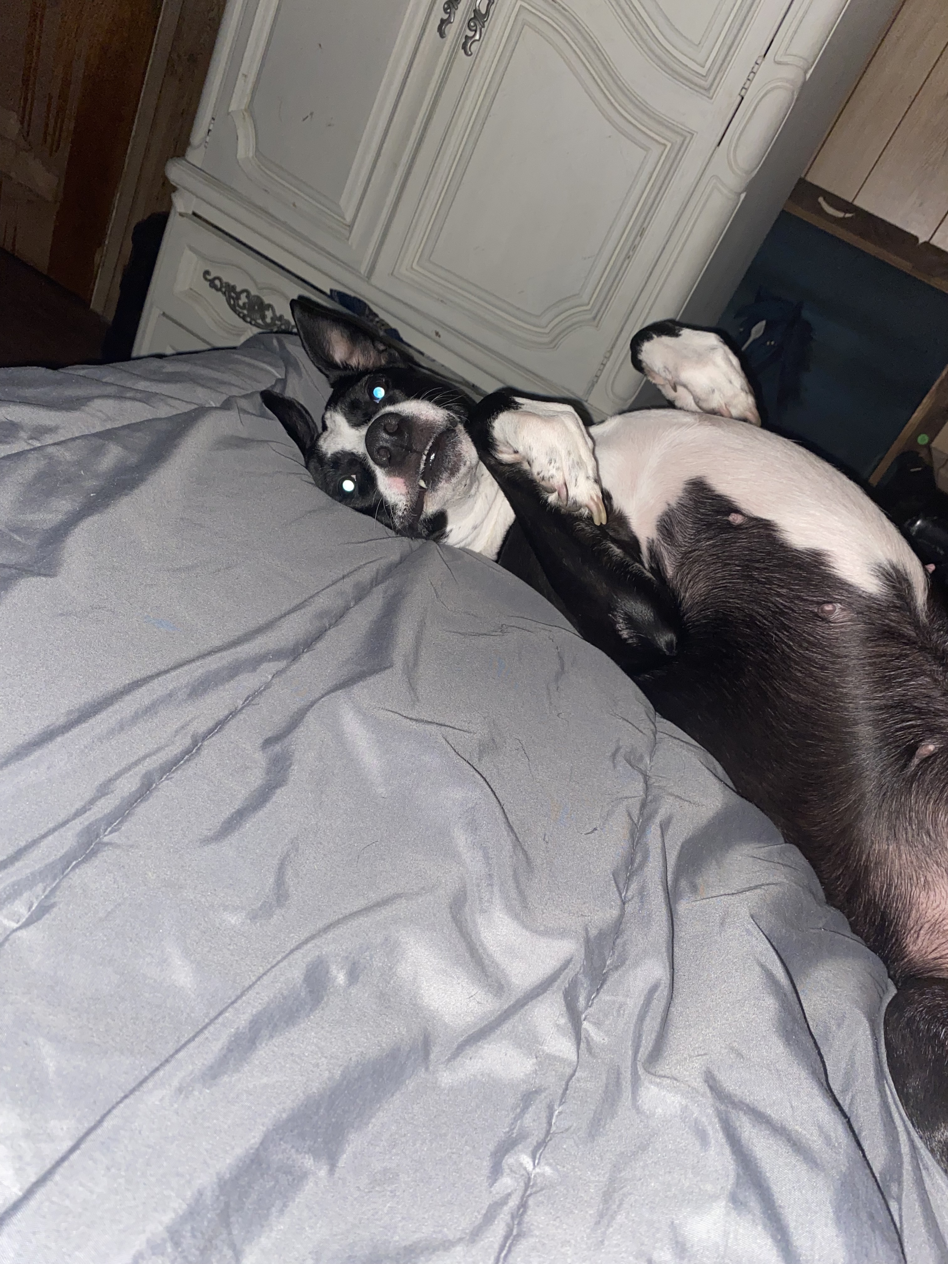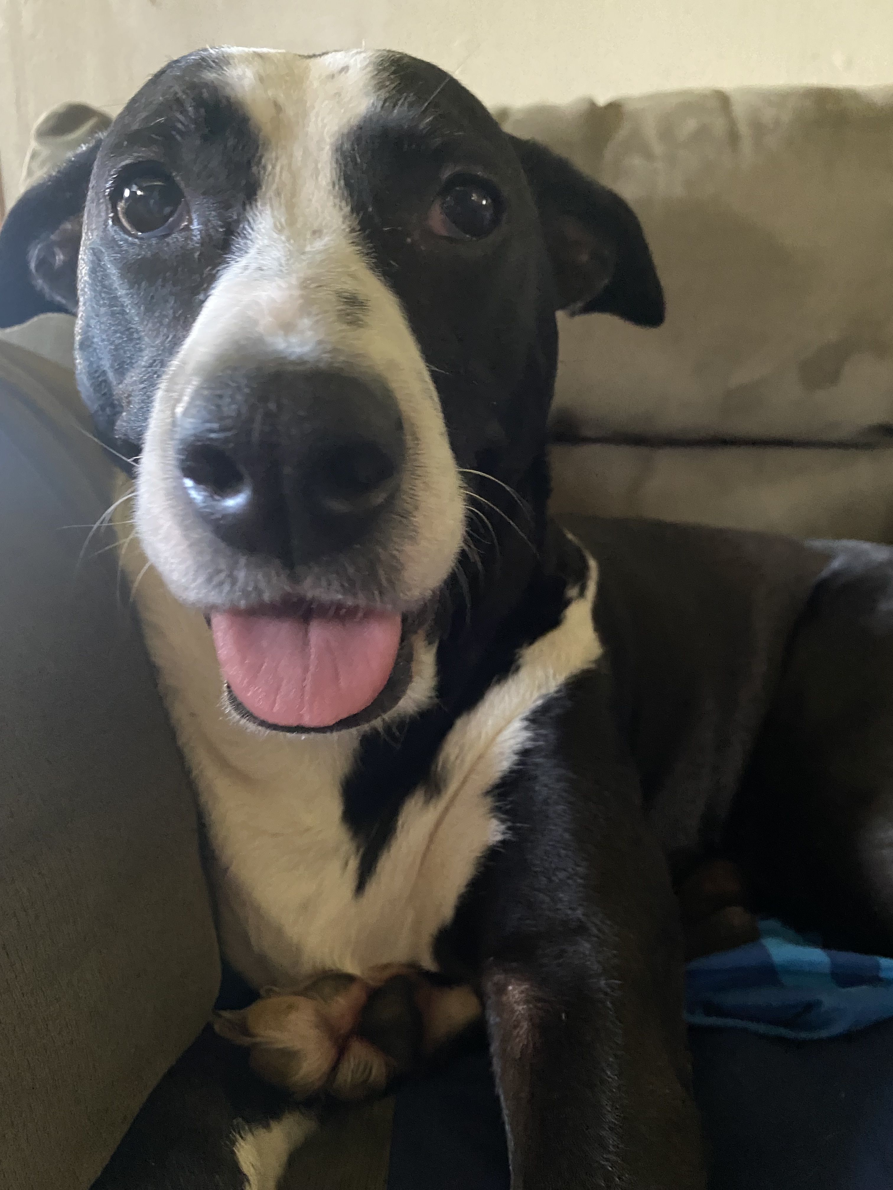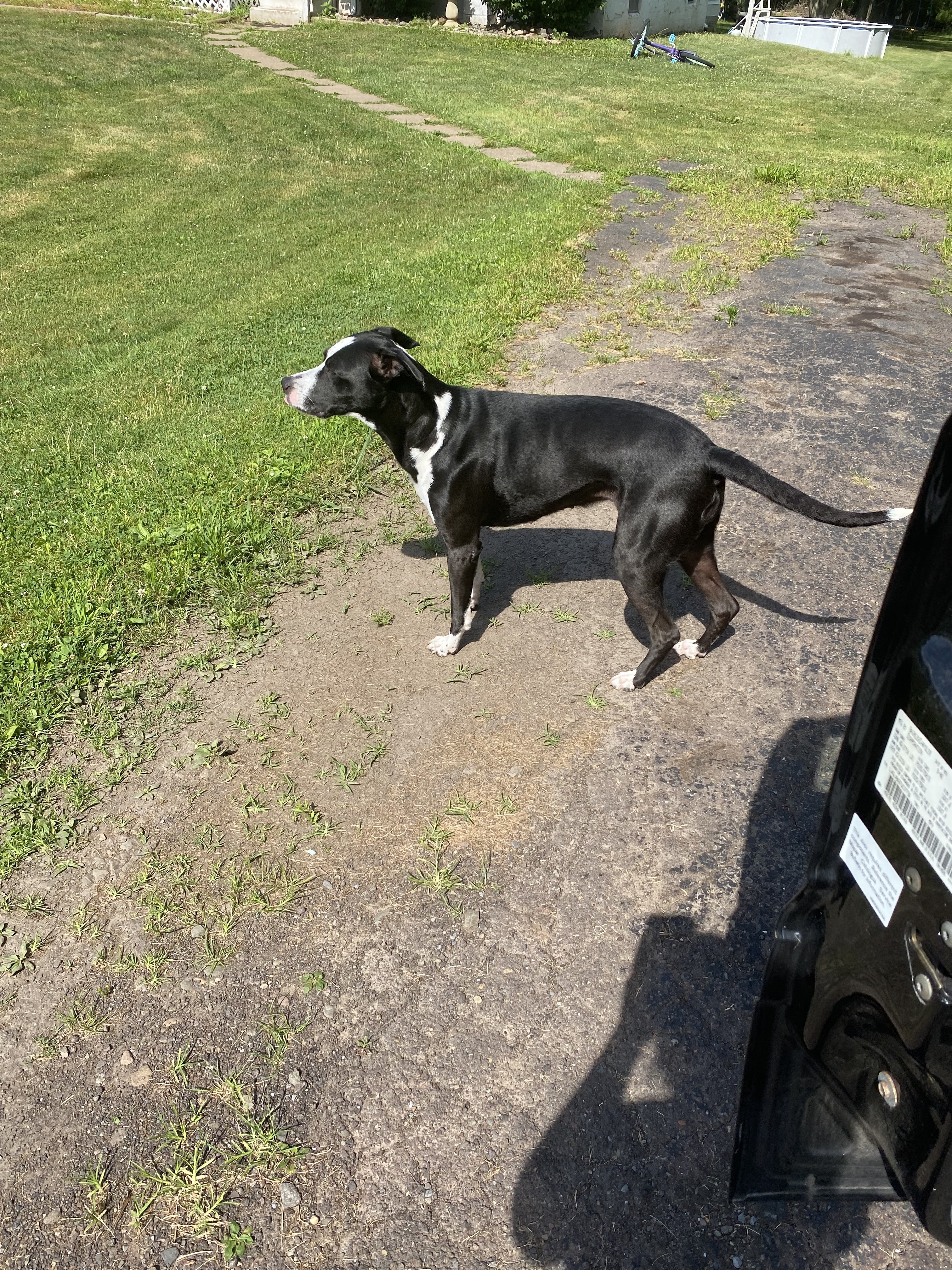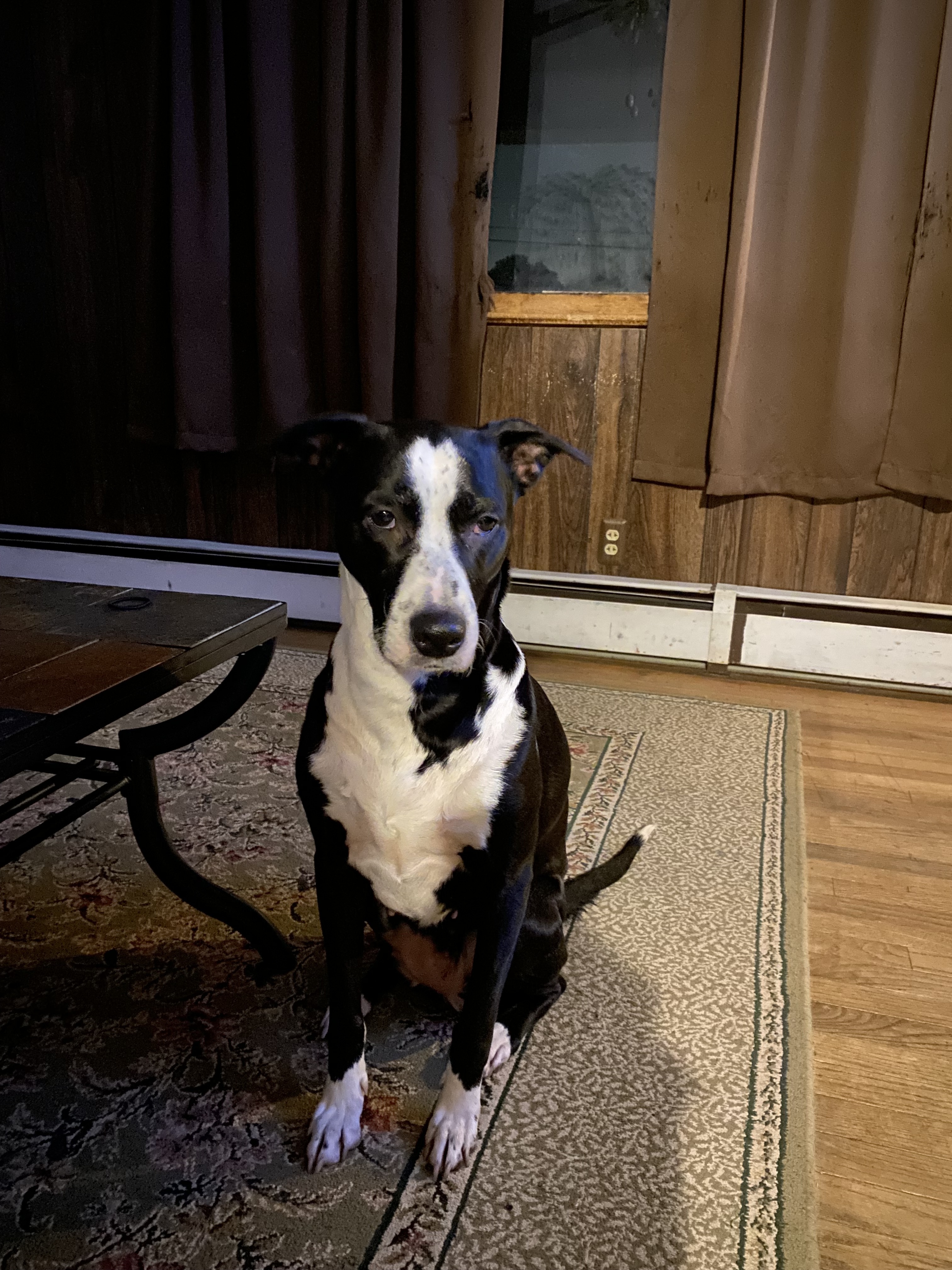 Black with white she was last seen at our house she ran a way when we let her out we haven’t had any people see her she has a heart shape on her head she is very friendly !