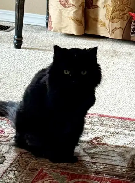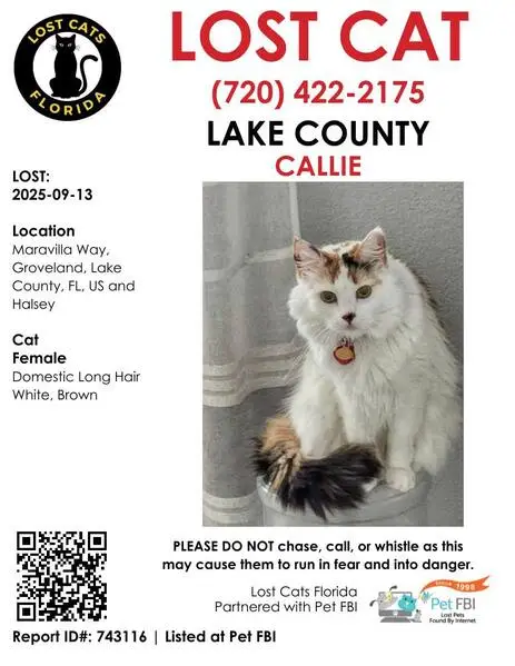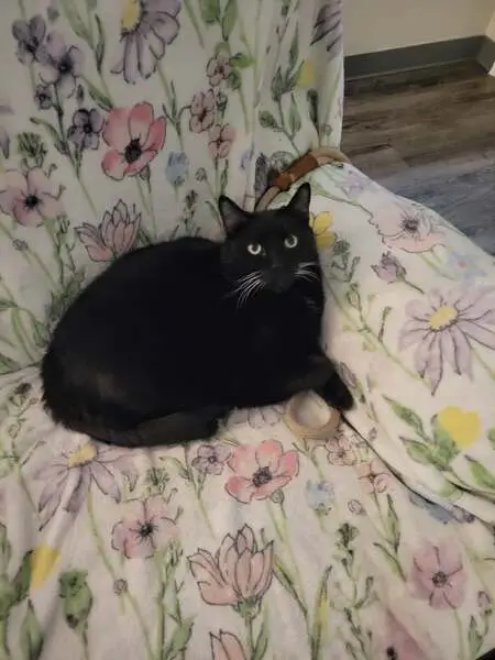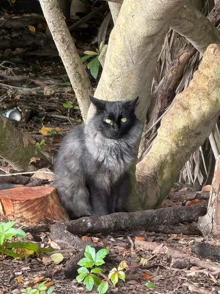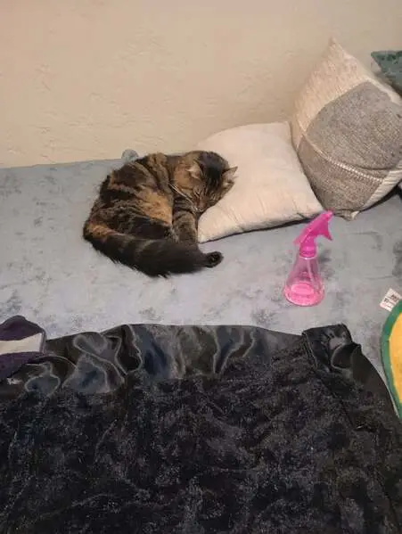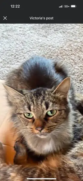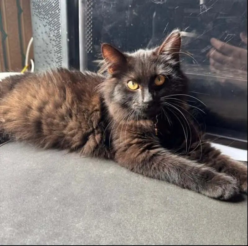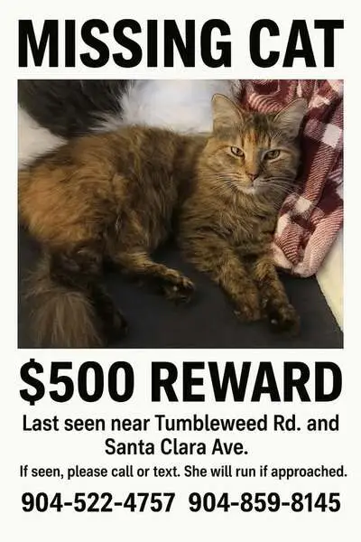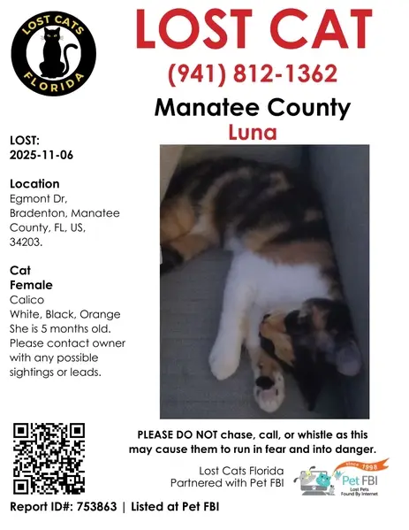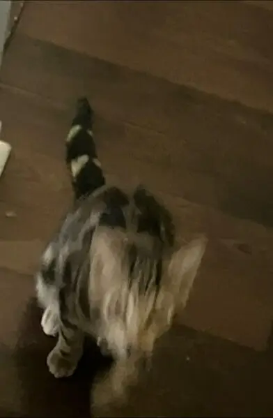 This calico/tortishell cat was under my house crying. She is okay but it is 29° tonight so I brought her inside and fed her. She is wearing a grey collar that looks sort of like a flea collar so I know she belongs to someone and I’m hoping to find them.