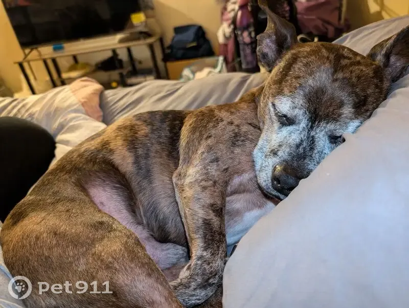 Brindle grey face his name is marley he's 14 years old and he's an emotional support animal very friendly
