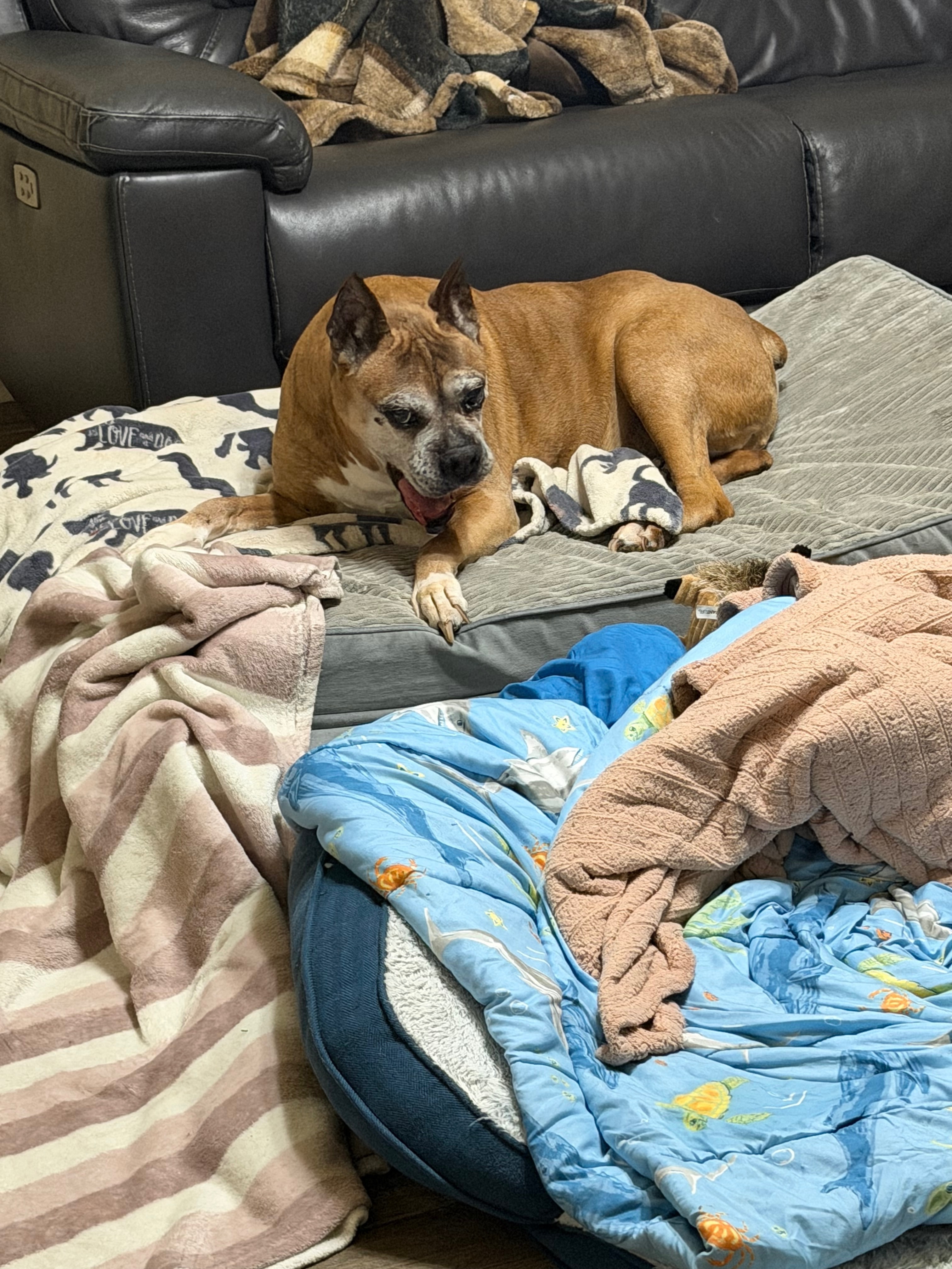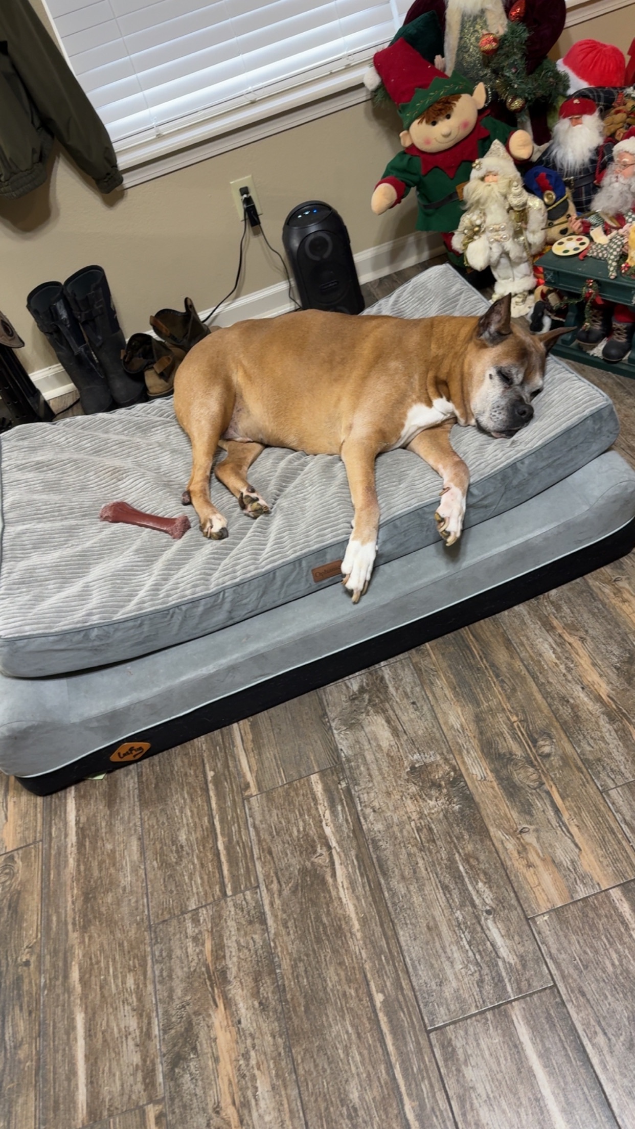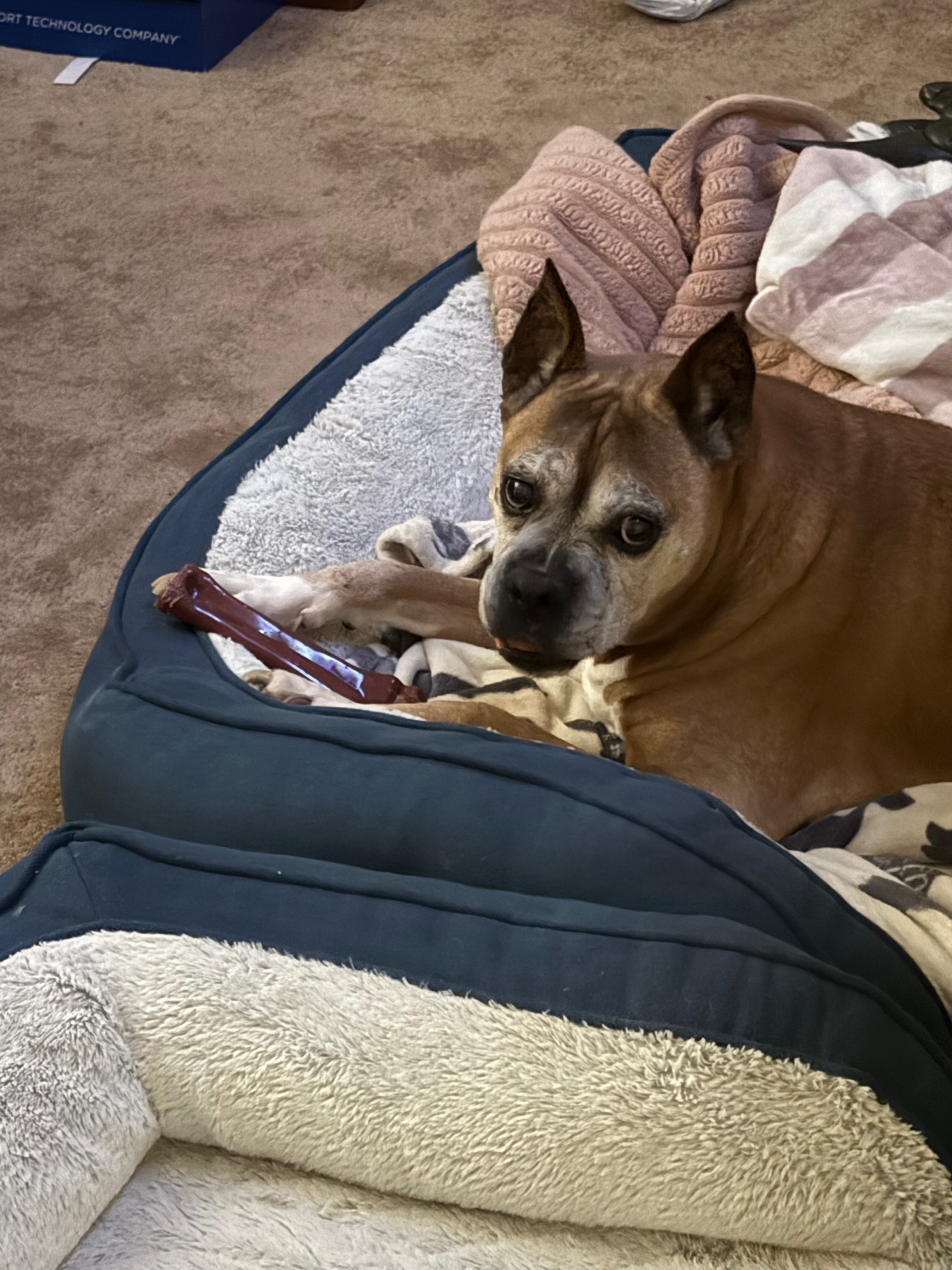 Light Brown with a white chest. He is old like 14 years old. Back legs don’t work to good. He was let out to go use the bathroom at 1am to 130 am and hasn’t been seen since. He is sweet weighs about 90 pounds