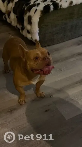 Friendly male French bulldog, light brown/fawn color with short coat. Medium build, compact body, upright ears, short tail. No collar or leash when found. Very people-friendly and calm, approached us on his own while we were walking our dog late at night. Found near the corner of houses by the road in Brandon. Checked with nearby neighbors — no one recognized him. Taken to a veterinary clinic — no microchip found.