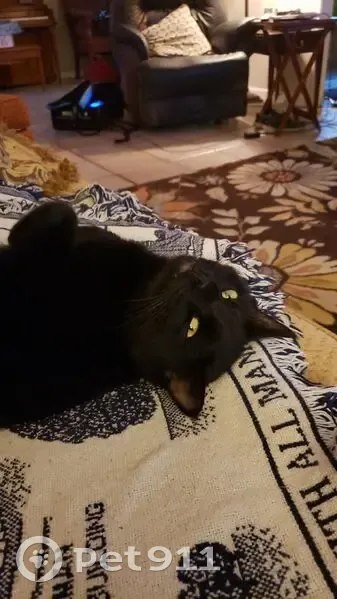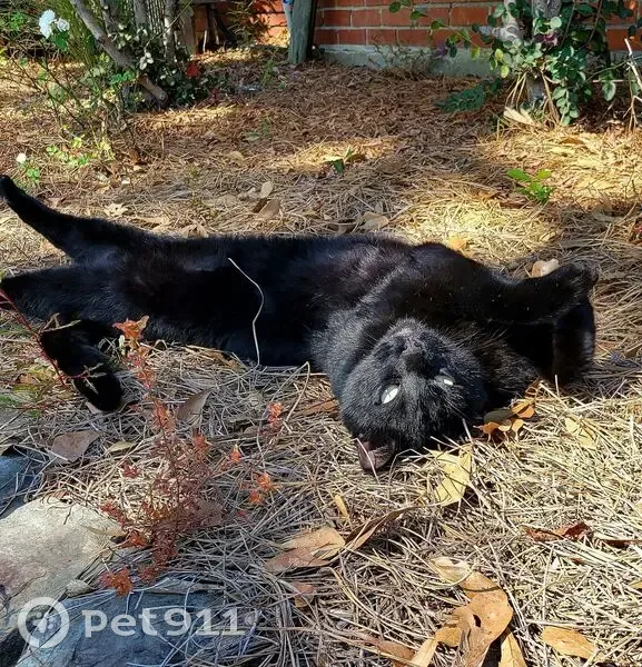 Black shorthair with yellow-green eyes, black nose, and black paw pads. He's big for a cat, he looks like a mini panther. He's an indoor/outdoor cat. He's spent most of his time outside lately, but he always come in to eat when we call him. He came inside Saturday morning on 10/4, but didn't come in that afternoon or night. No one has seen him since then.