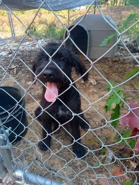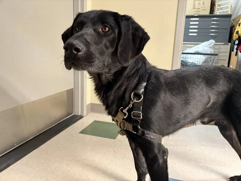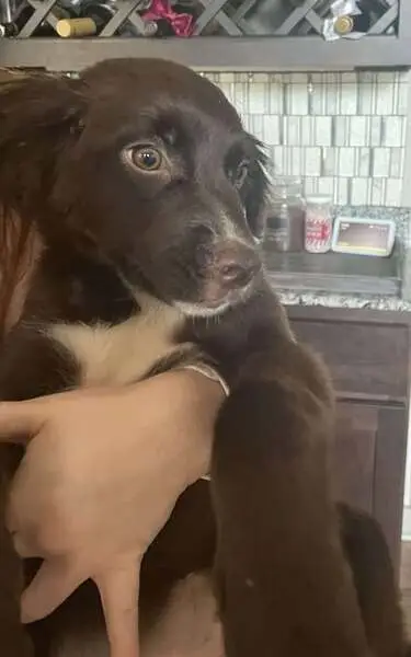 Lab mix about 6 months old. He goes by the name of Hank. He isn’t wearing his collar nor is he microchipped. All the local vets (brazoria vet and Wild peach village vet) has our number and his description. He is wearing his flea collar. He has kind of a brindle fur pattern on him.