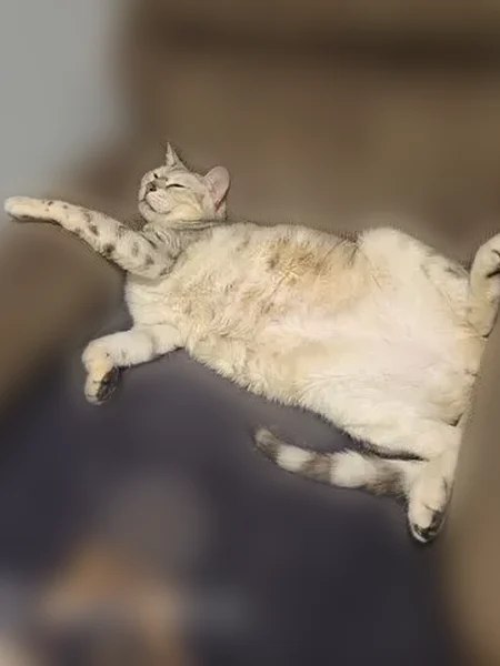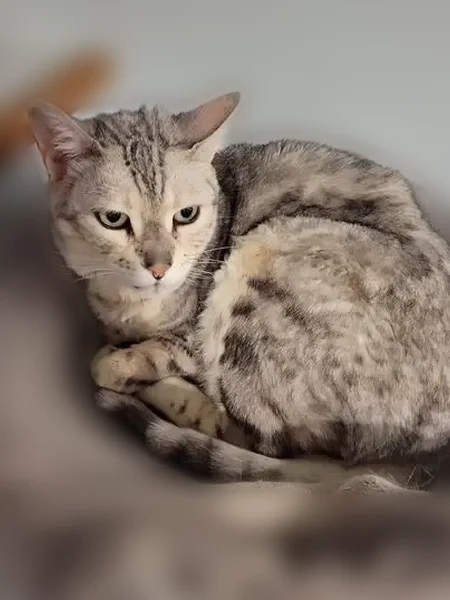 Yuki is white and grey with green eyes and a pink nose. She is pretty large for a cat, about 12 pounds. Her back legs are a little stiff. She is fairly skittish so I imagine she found a quieter spot to tuck away and hide. She is very vocal at meal times and can be quite loud for a cat when calling.