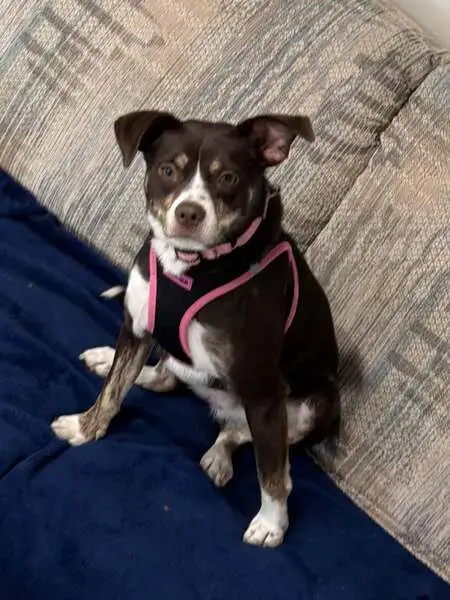 We found him late at night walking down East Ave near Ft Dade in Brooksville. He has a Dark Dapple Coat, aged white fur on face (mostly sides of snout). Very firm pointed ears. Pretty healthy for an old dog. Very missing fur patches on tail. Pronounced protruding snout shape, slightly bent at an up tilt. He is super friendly and well mannered, and seems to be missing home