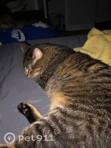 $1000 cash reward for his safe return. He is a stripped tabby- brown, gray, and white with a tan/ organish belly. He is NEUTERED and fully vaccinated. He has 2 micro chips and is very affectionate. Probably scared since he's been missing for so long