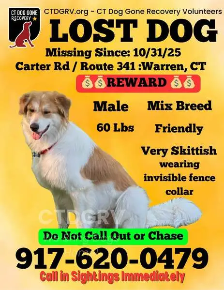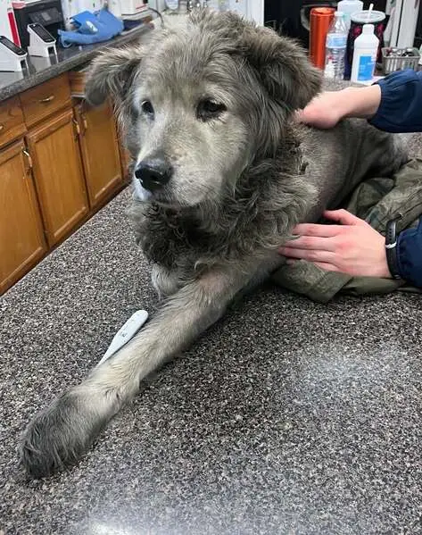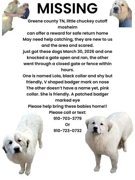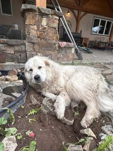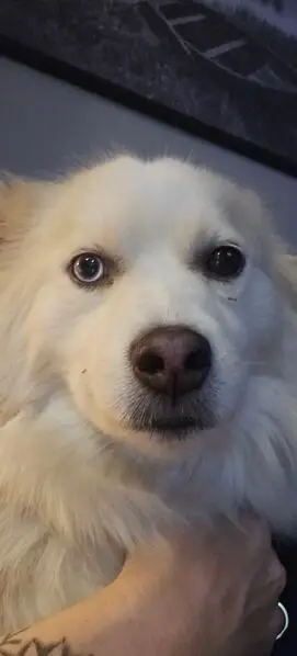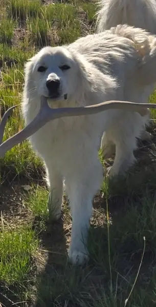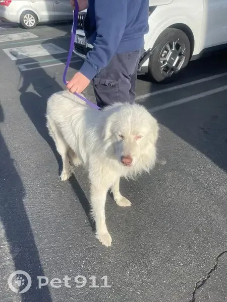 White Long hair male Shepard/Great Pyrenees, with 1 blue and 1 green eyes, back right leg still had dew claws, very sweet boy, NO COLLAR either. I took to the San Jacinto Valley Animal Campus. He was running back and forth into traffic off the 371 and 79 in Aguanga area.