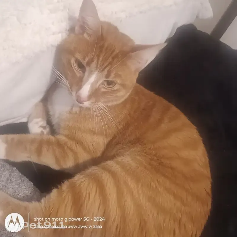 Yellow/orange cat he’s got a white chin and b...