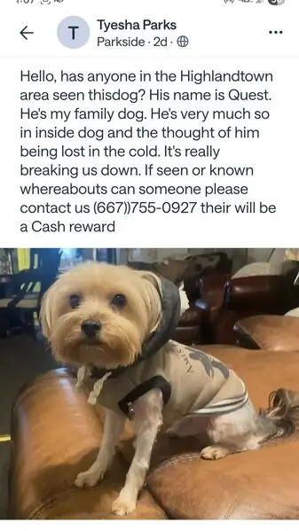 We're still searching for my baby, we're offering $3,000 reward ️ Please help us bring him home We havent found JJ, my heart is hurting, please help us share and keeping an eye out there. Please help us find JJ, he got out Sunday july 27, evening in Bridgemill, near Chickory Ln and Bridgemill Ave, Canton ga. He is a Yorkie, has a blue collar with a tag with his name, address and phone number. He is very friendly and likes to play. Please contact me with any information 4045284907