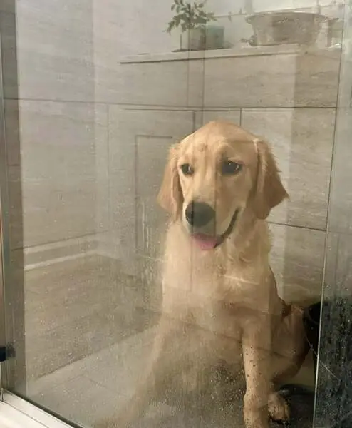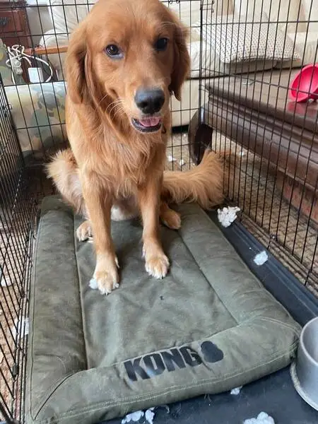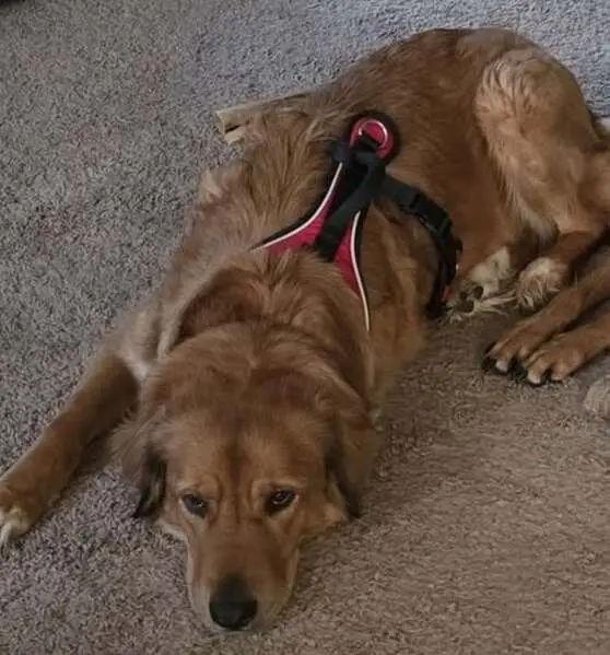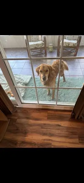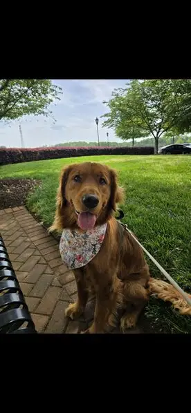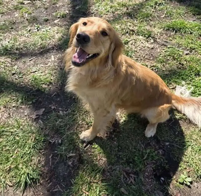 He is golden color with gold eyes. I believe his sister is the husky. Super friendly and well behaved. Also has a collar no tags.