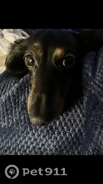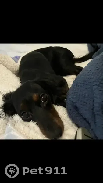 Daisy is a small dachshund with a black and tan coat. She was last seen in Centereach, NY. She is very excitable and friendly, but may get scared if chased. Please try to calmly call her or offer food if spotted.