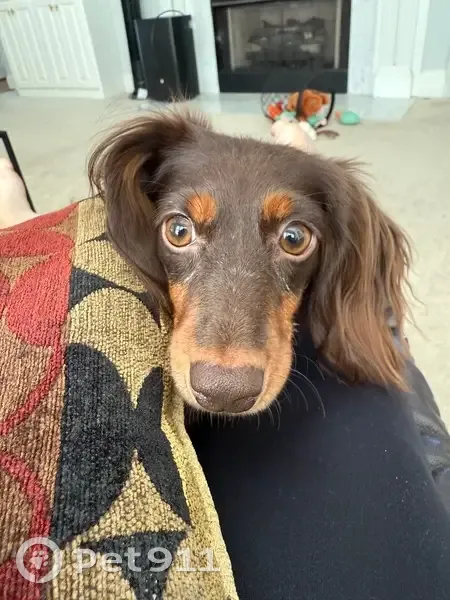Coco is a brown, long haired mini dachshund. She was staying with my in-laws and got off the collar and ran. She isn’t familiar with the area and may be very scared. She’s micro chipped and very sweet.