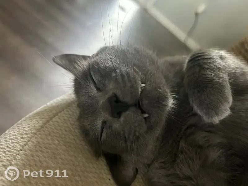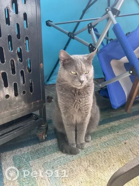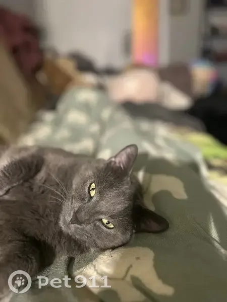 • Grey • Male • 4 yrs old • Very friendly • big, but healthy • yellow/ green eyes • 10-12 lbs • soft, unmatted fur • short haired • neutered with a little lump where the neuter wasn’t perfect when he was a baby and caused a hematoma. So there’s just a funny little lump there now.