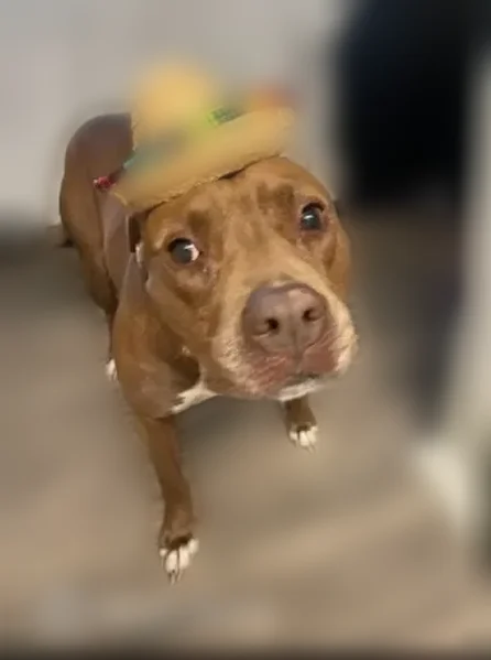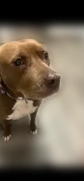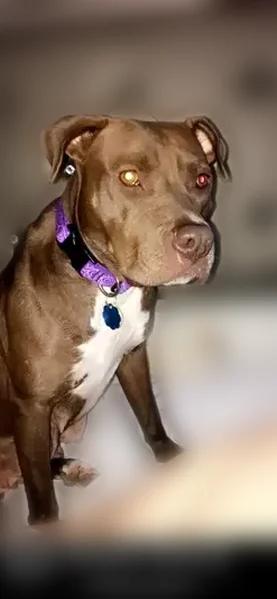 Coco is older with white hairs around snout, white on paws and chest. Very sweet and shy.