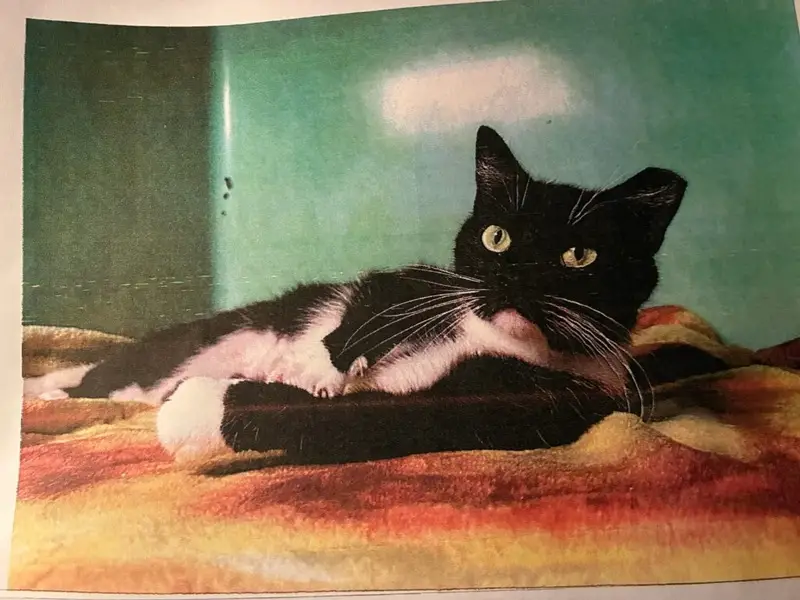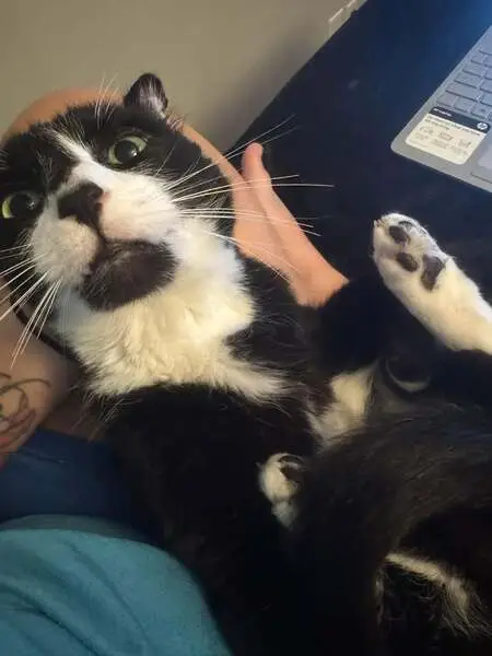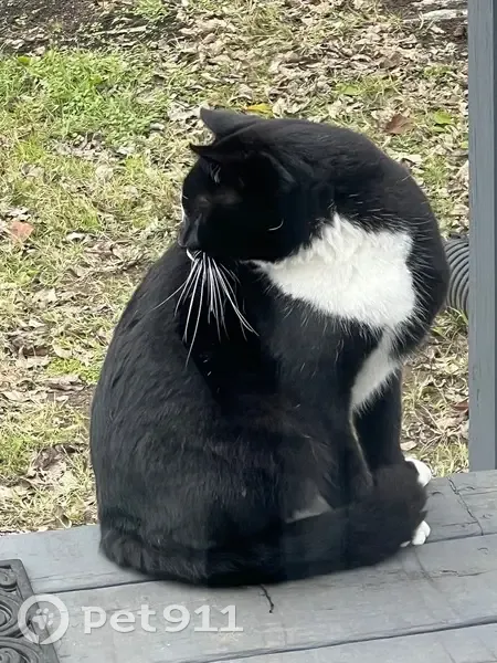 Black and white, large male cat. Friendly and in great condition. He has been hanging around neighbors yard and at my house. Maybe was an indoor cat…he has tried to come inside.
