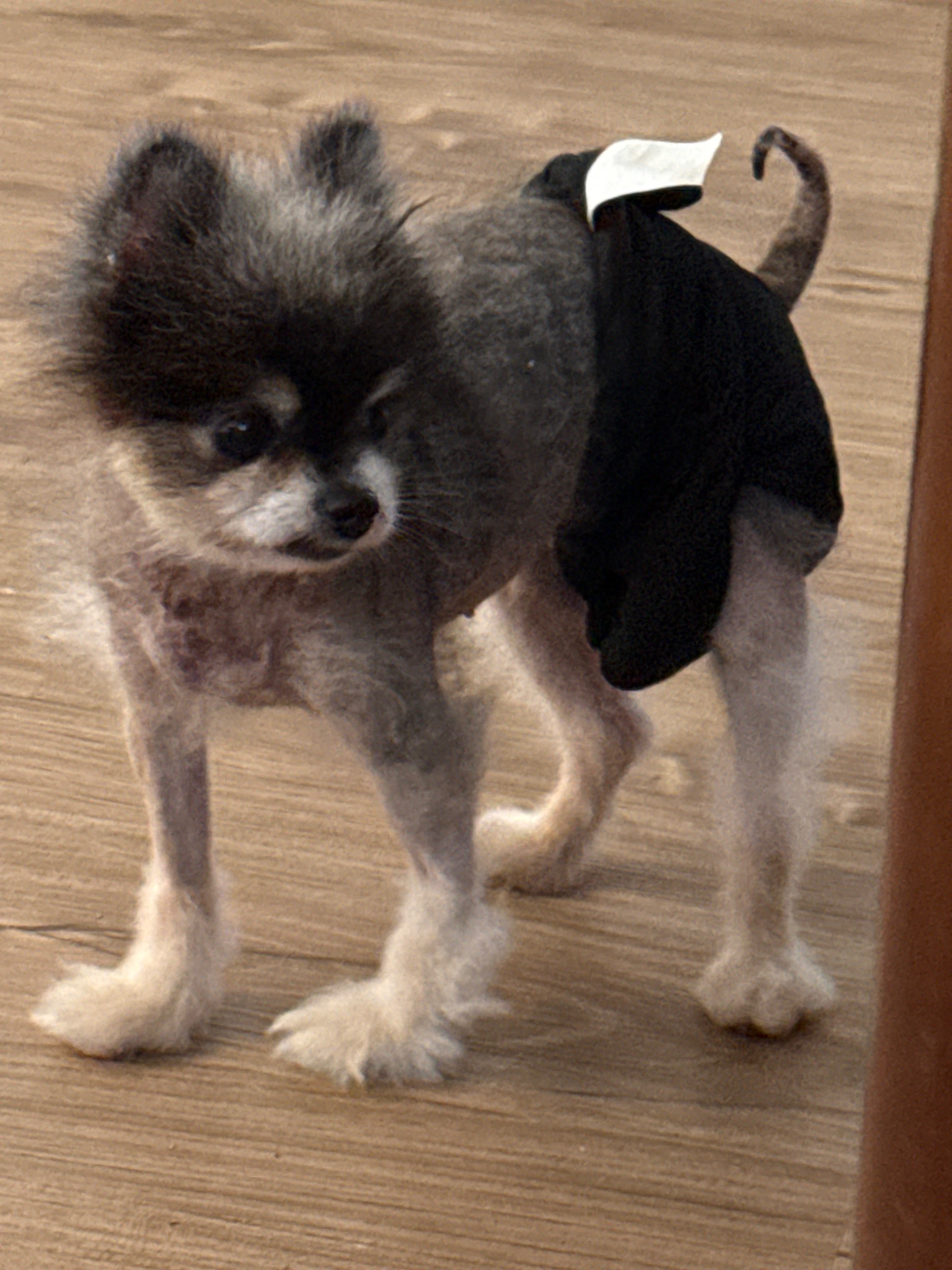 Coco is chubby and chocolate and white and fluffy. She is 14 years old and requires a shot and a pill everyday. She has under the care of a vet for her medical condition.