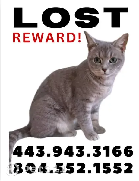 Sweet girl Zara has been missing since January 9 from Bridgetown Circle in Chester, VA. Zara approximately 5 lbs with blue/green eyes. She does have striping but in can appear just a solid light gray in certain light. Please text 443.943.3166 with any information or sightings. Thank you