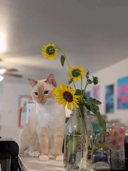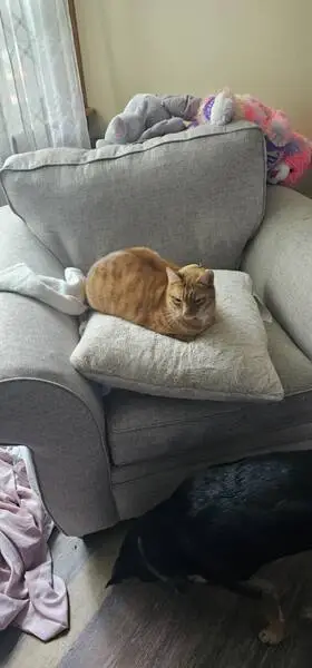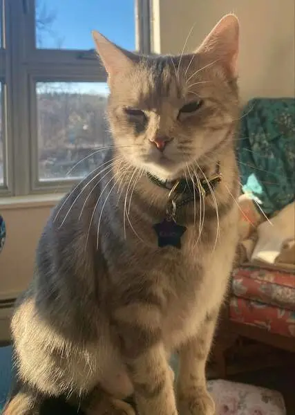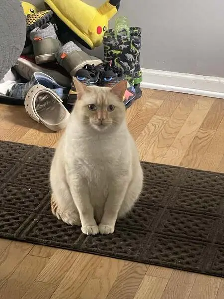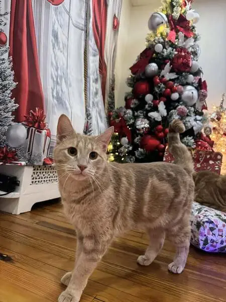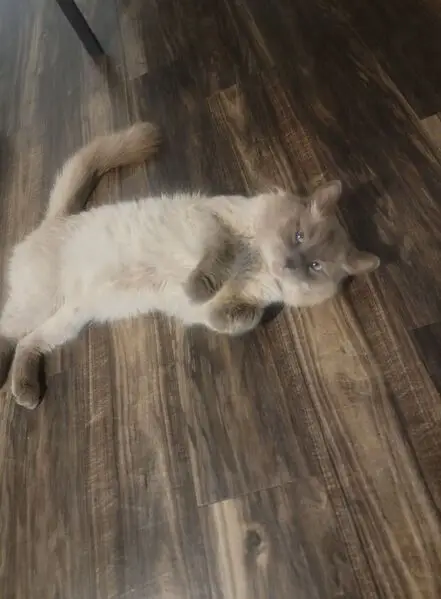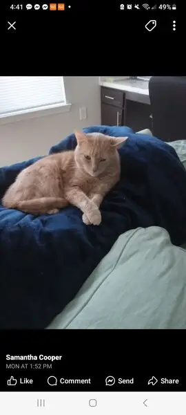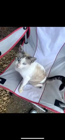 Blondeish and white , male cat not neutered, friendly, cuddly & he just appeared on the 1700 block at the start of summer (end of may -june 2025)