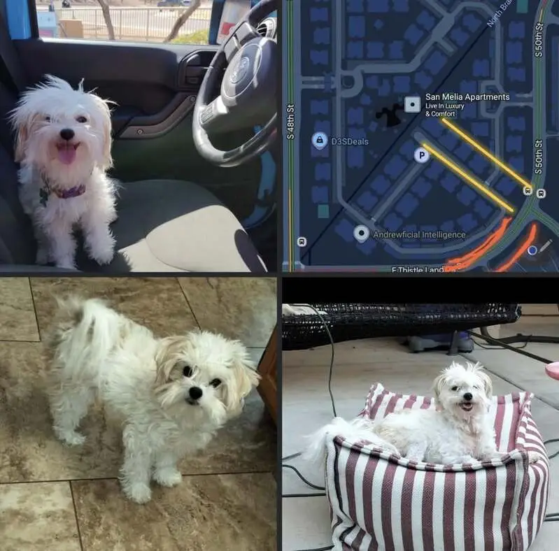 Camínenlo en el área con correa para ver si los guía a su casa. No le pregunten a la gente en la calle si es de ellos porque cualquiera diría que si para quedarse con el.