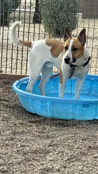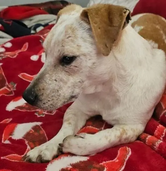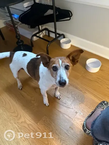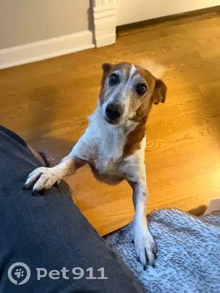 FOUND: Female white and brown terrier mix. Very sweet, food motivated senior dog. We are providing shelter, food and water until we can locate her owner.