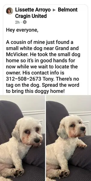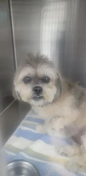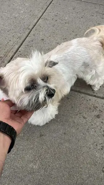 He is a small cream and tan Shih Tzu. He has fluffy ears and tail . He is groomed but is due for a new one. Fur is probably covering eyes. He’s very timid and scared of loud noises. Friendly but scared of strangers, will bark. Loves wet dog food and dog bone treats. Last seen on Adams and Kostner Streets. Got frightened when a firework went off in the neighborhood and ran out back gate and down the alley. He is microchipped.